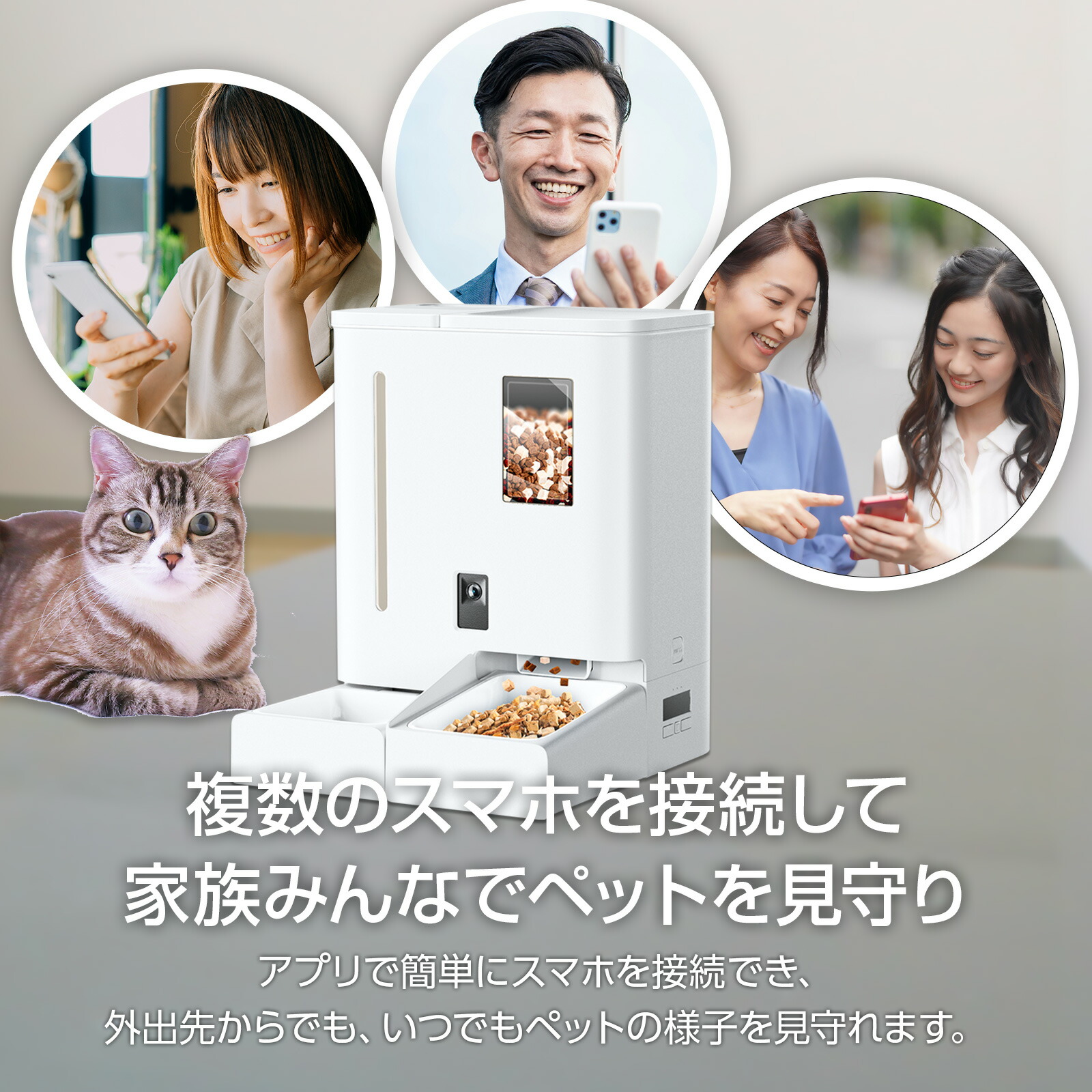 Wi-Fi接続 ペットフィーダー 6リットル スマホコントロール 留守番 オリジナルステンレストレー