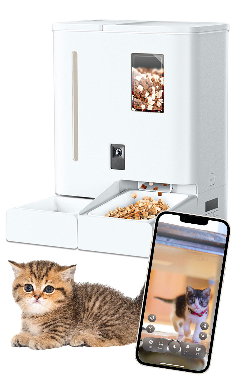 カメラ付き Wi-Fi接続 ペットフィーダー 6リットル スマホコントロール 留守番 写真動画撮影