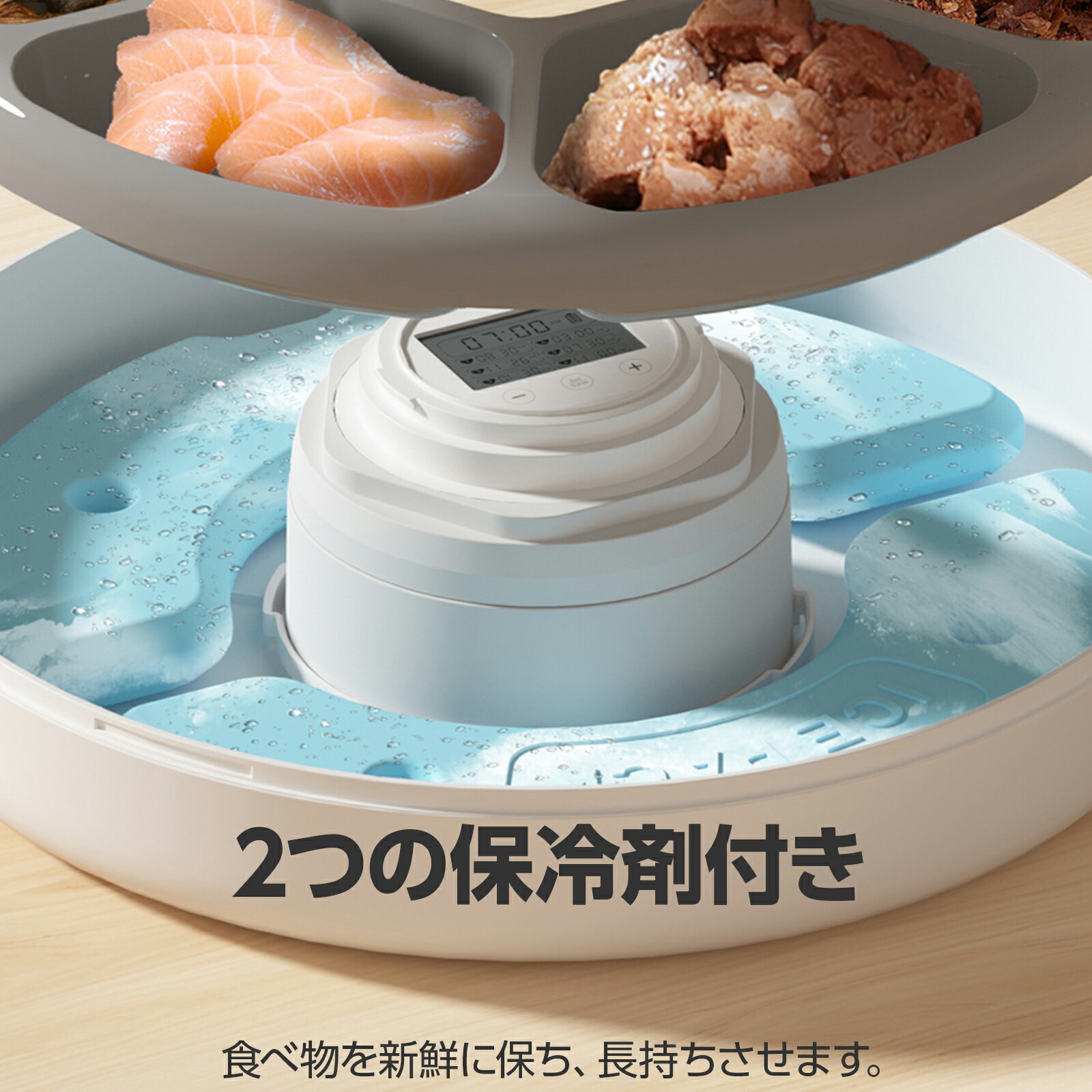 ペットフィーダー 6食分 充電式 保冷パックでフードの鮮度をキープ 自動給餌器 ドライ・ウェットフード対応 24時間タイマー
