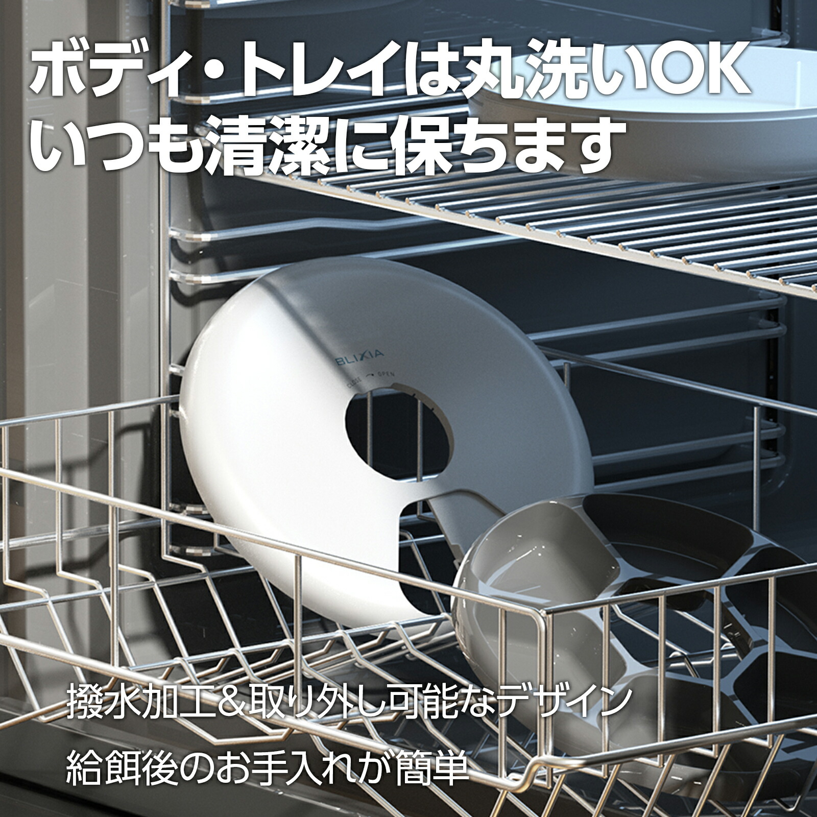 高品質な食品級ABS材質採用。給餌トレイは取外し式なので、お掃除もらくらく・簡単に。