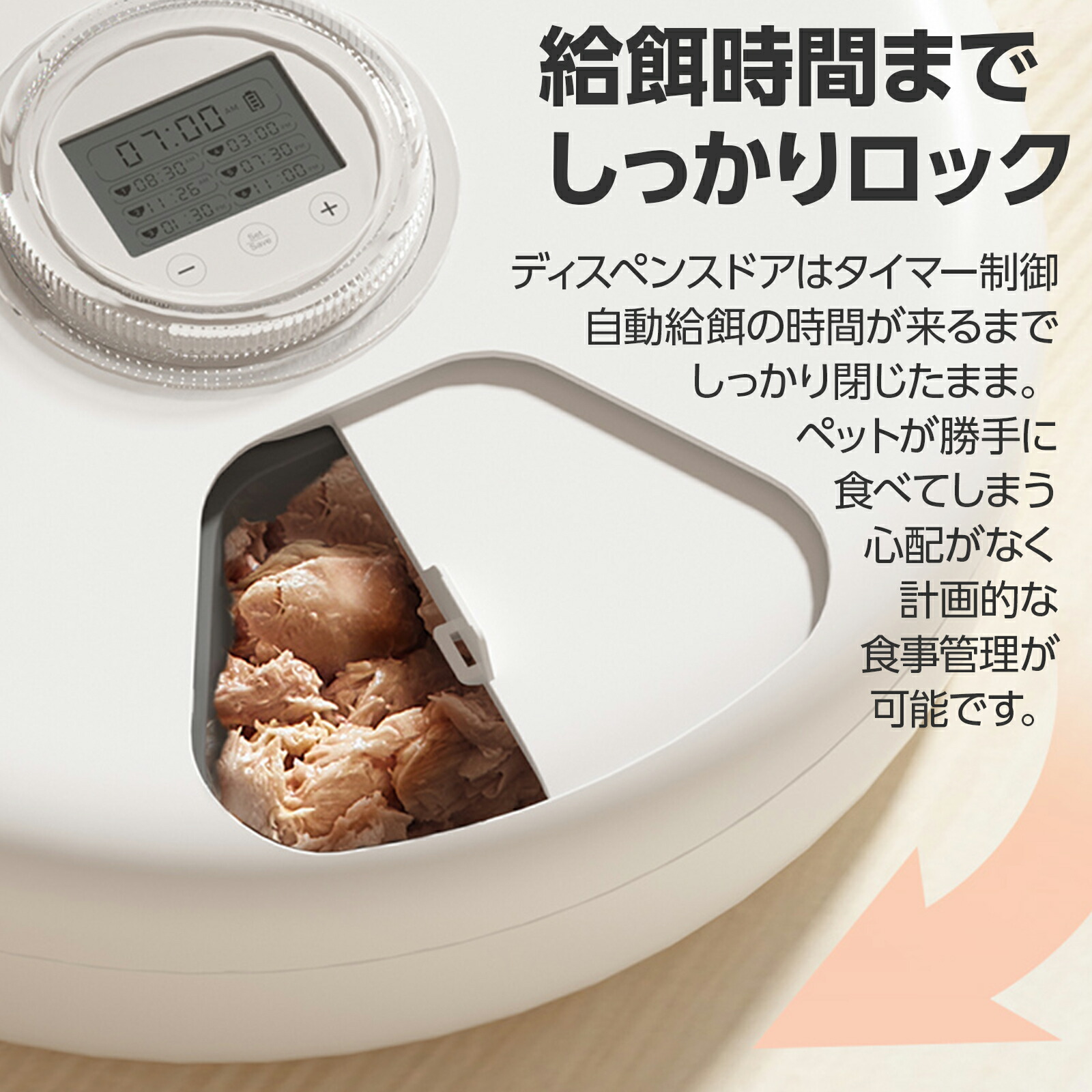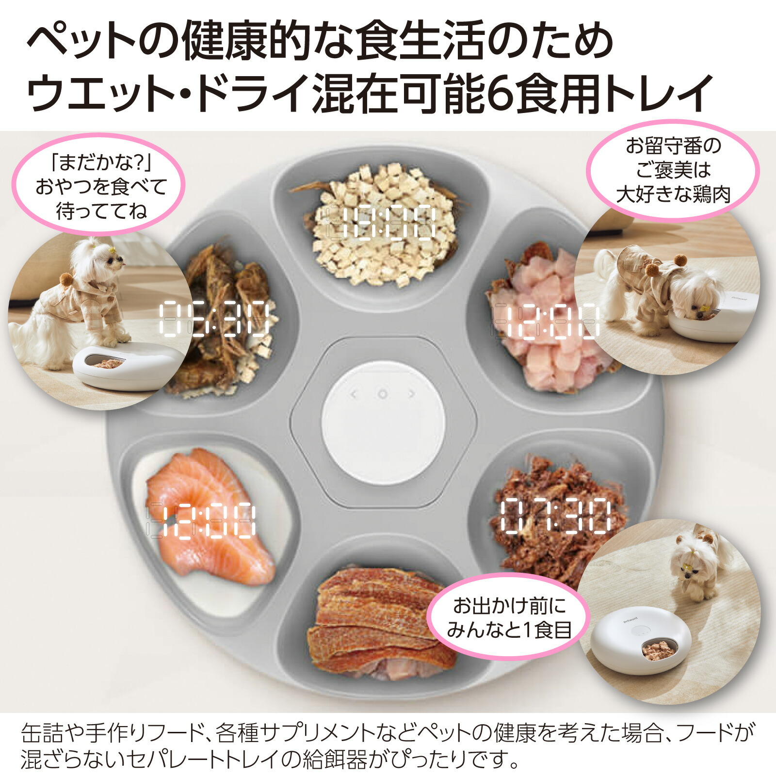 ペットフィーダー 6食分 自動給餌器 ペット食器 自動 えさやり ドライ ウェットフード対応 食事 健康管理 ネコ いぬ エサやり 留守番 留守番在宅 ペットグッズ 24時間インターバルタイマーセット