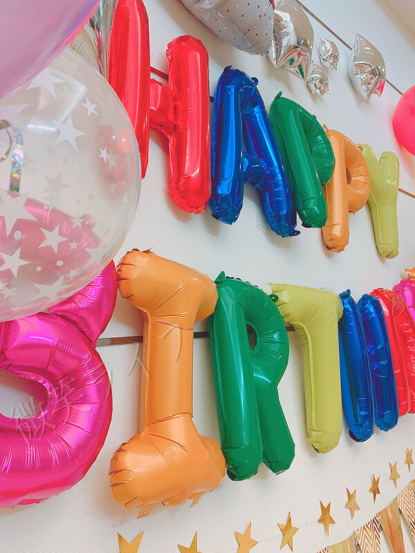 並び間、レイアウトの差で取り付けサイズも変わります。Happybirthdayのバルーンは、糸でくっつけることも出来ます、どうぞ大切なお誕生日に、いろいろなアイディアを出してご自由に組み合わせて楽しんでください