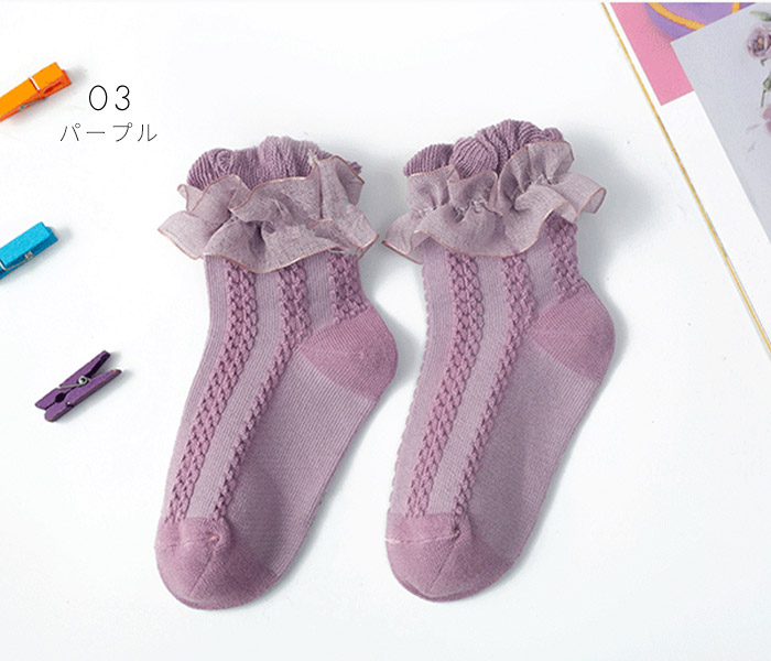 イベント用 小学校 お遊戯会 運動会 子供服 春夏秋 無地 カラー可愛い シンプル お洒落 無地 レース 可愛い色 韓国 パープル ライトパープル ピンク シャビーピンク 女の子 ベビー靴下 メロウ 韓国子供服