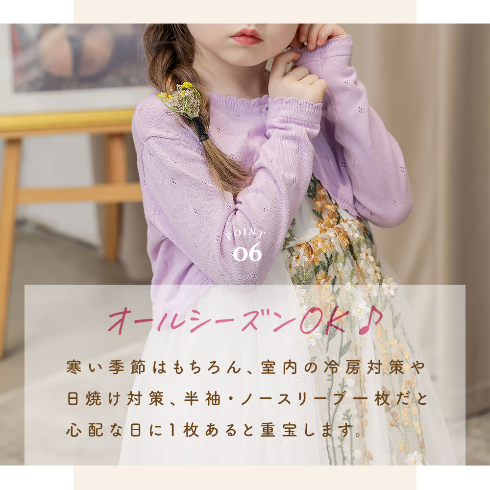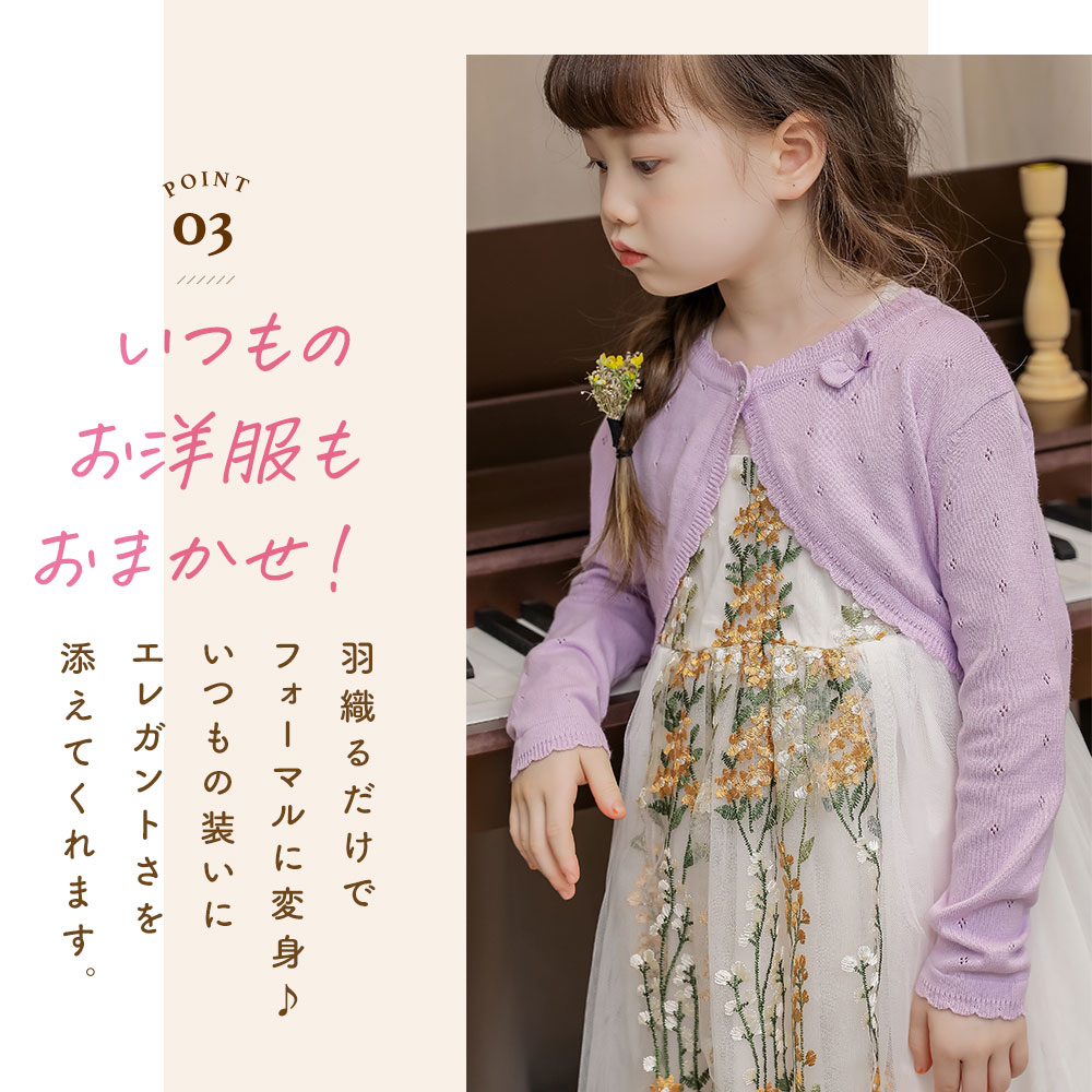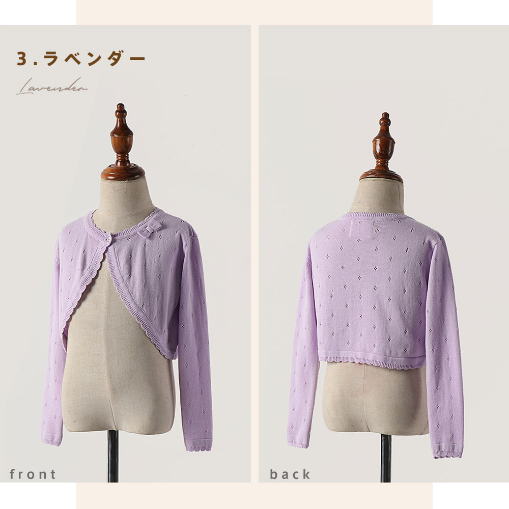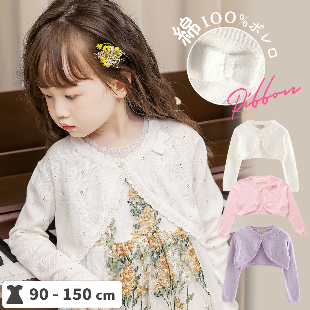 キッズ カーディガン 子供 ボレロ ニ キッズ トップス カーディガン ボレロ 通販 ホワイト ピンク ラベンダー 90cm 100cm 110cm 120cm 130cm 140cm 150cm