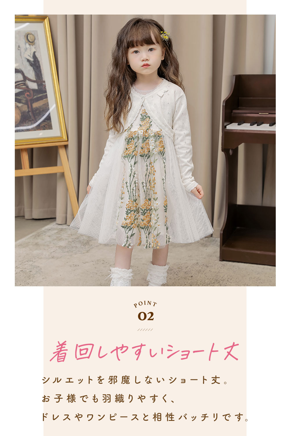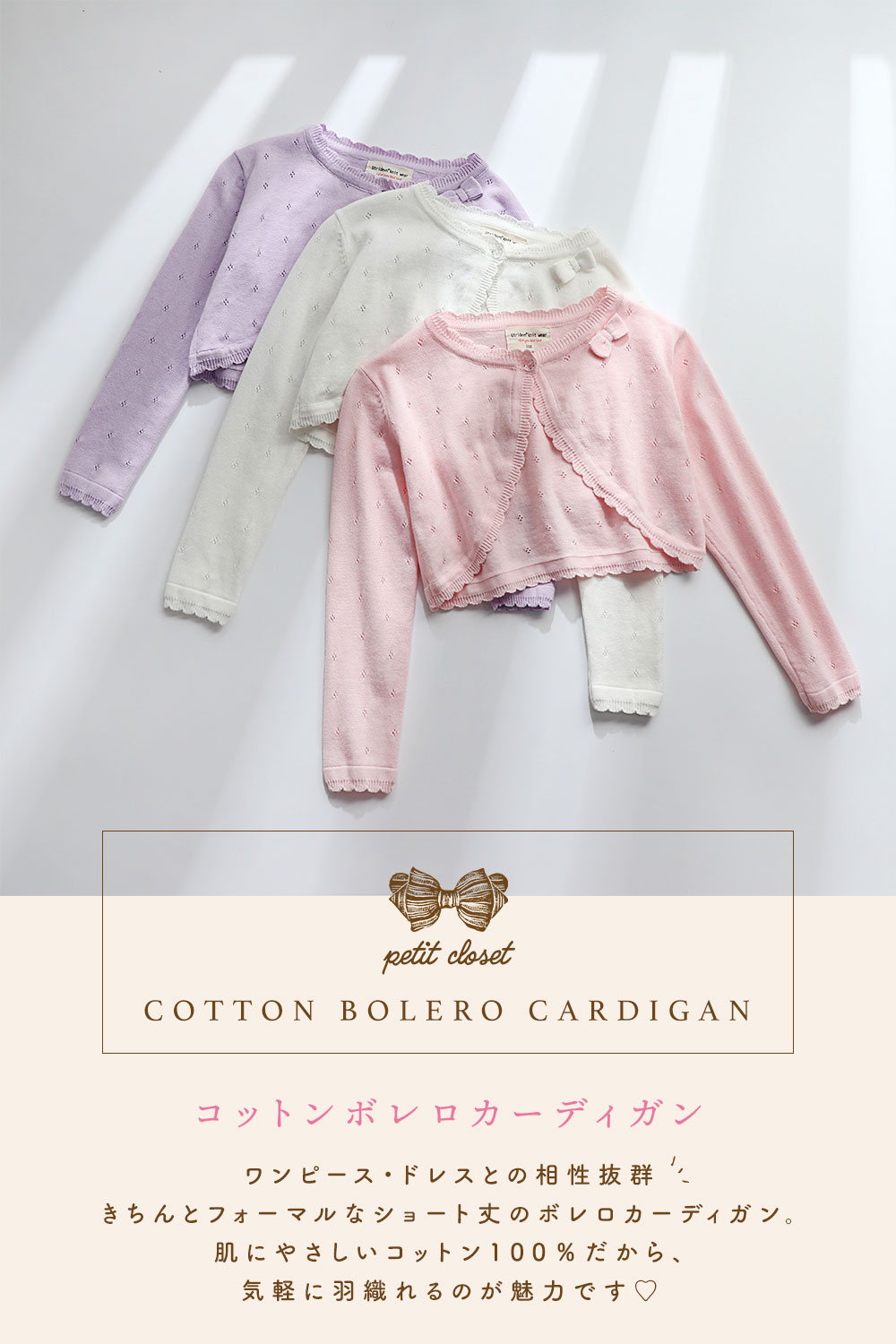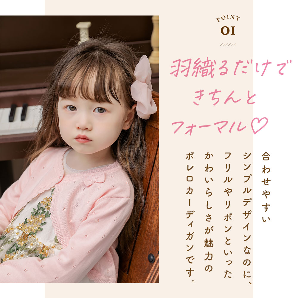 キッズ カーディガン 子供 ボレロ ニ キッズ トップス カーディガン ボレロ 通販 ホワイト ピンク ラベンダー 90cm 100cm 110cm 120cm 130cm 140cm 150cm