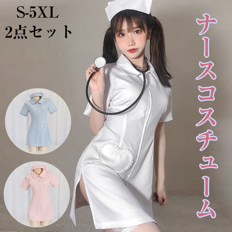 ハロウィン ナース コスプレ 仮装 ナ コスプレ 変装 仮装 コスチューム一式 続々登場 ホワイト ブルー ピンク S M L XL 2XL 3XL 4XL 5XL