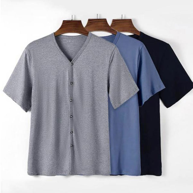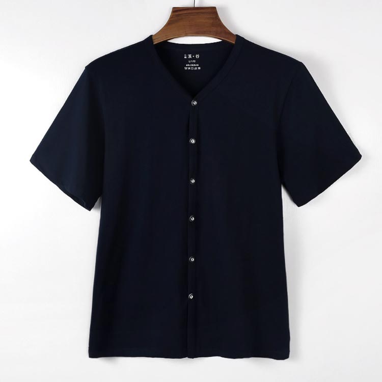 ルームウェア 前開き 無地 メンズ 半 ネイビー グレー ブルー ホワイト L XL 2XL 3XL 4XL