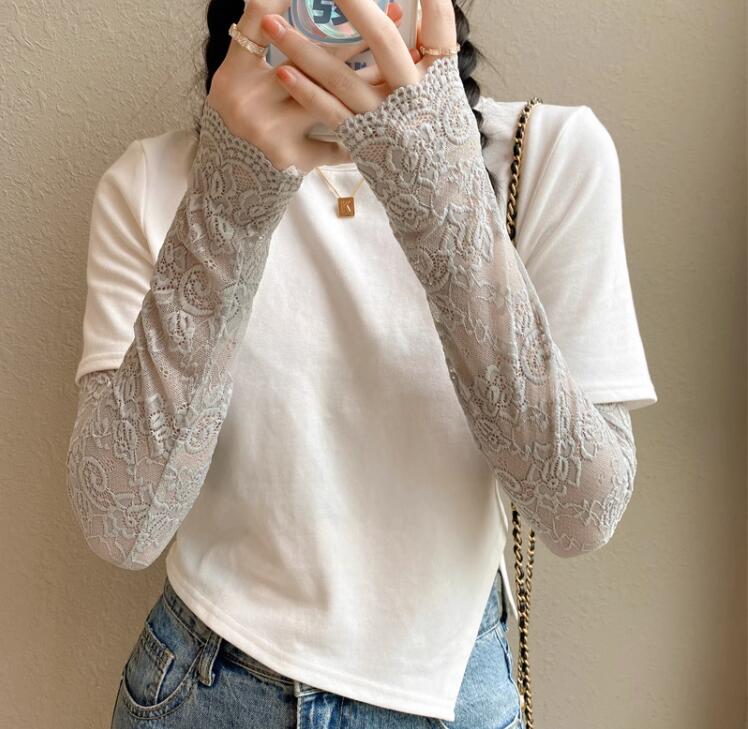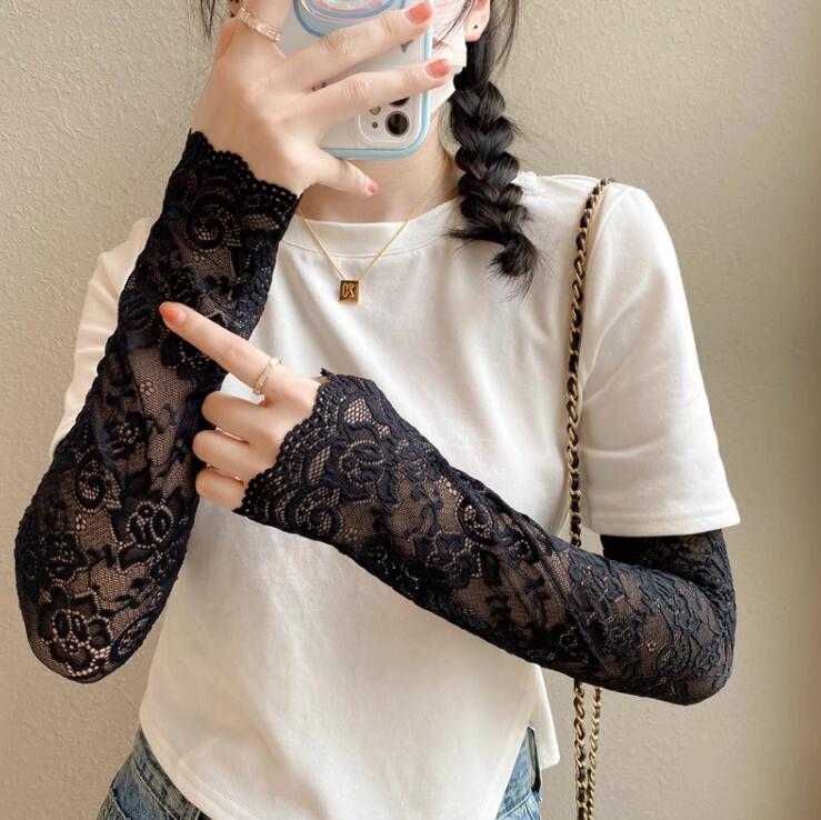 アームカバー 花柄 レース ロング丈 バッグ 小物 ブランド雑貨 豊富な品揃え ブラック ホワイト グレー ベージュ