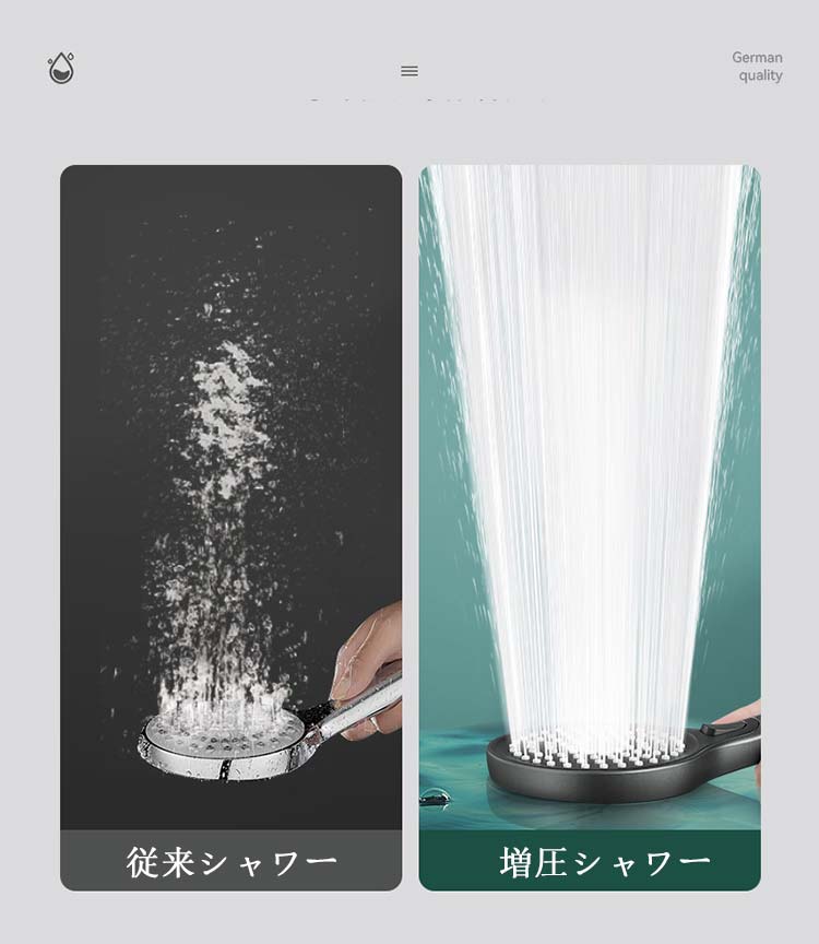 シャワー 増圧 シャワーヘッド 水圧 バス用品 シャワーヘッド 豊富 シルバー ブラック シャワーヘッド本体 3点セット