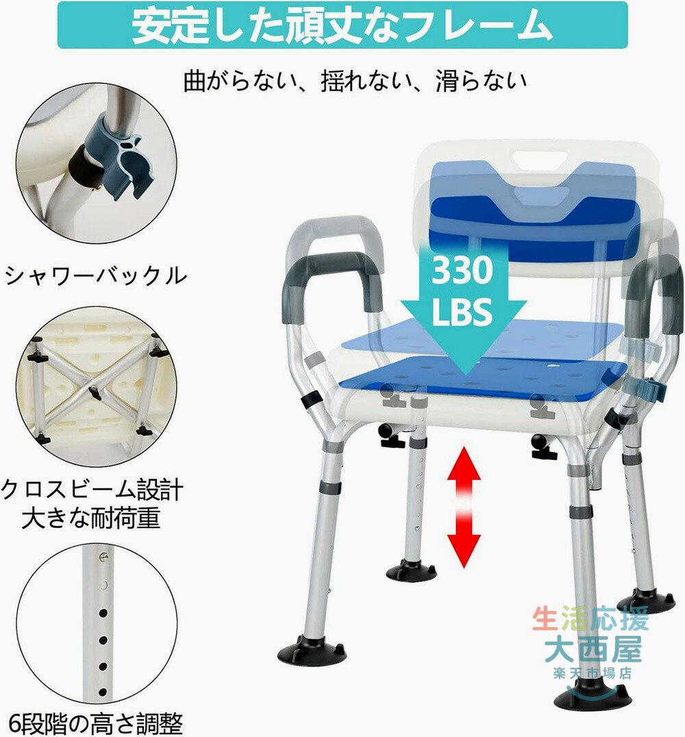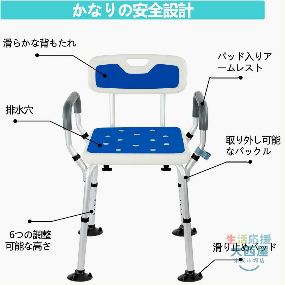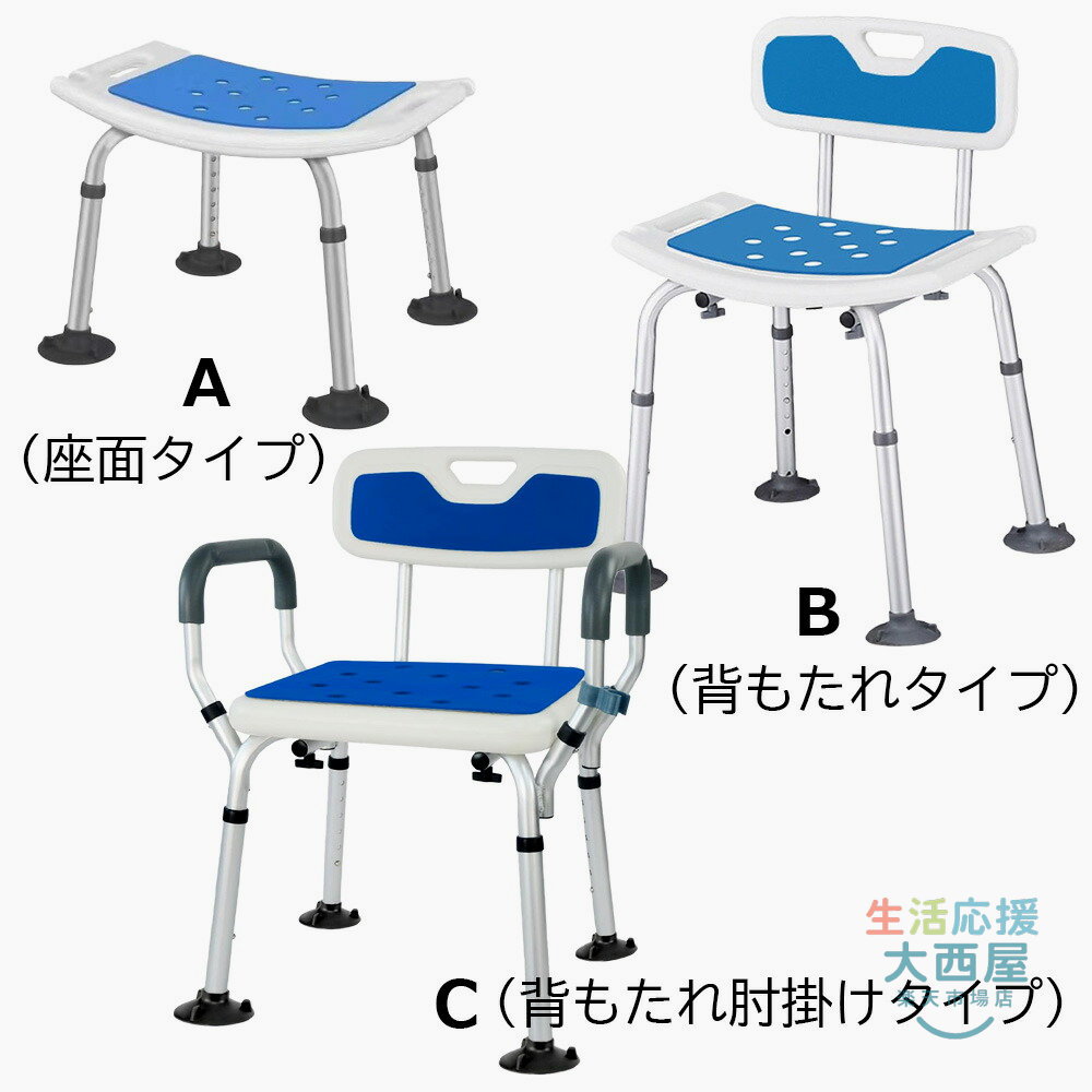 シャワーチェア 介護用品 風呂椅子 6 A(座面タイプ) B(背もたれタイプ) C(背もたれ肘掛けタイプ)