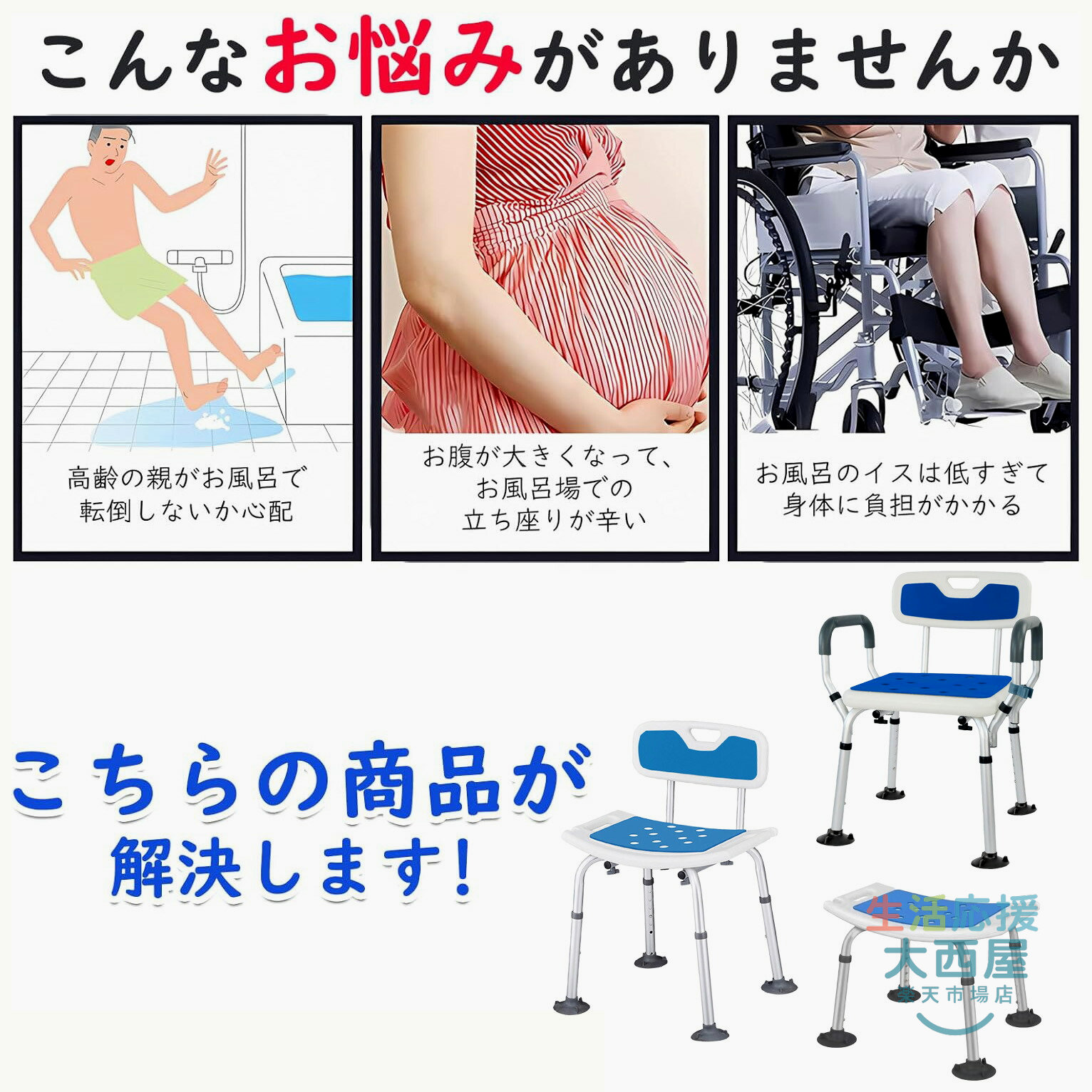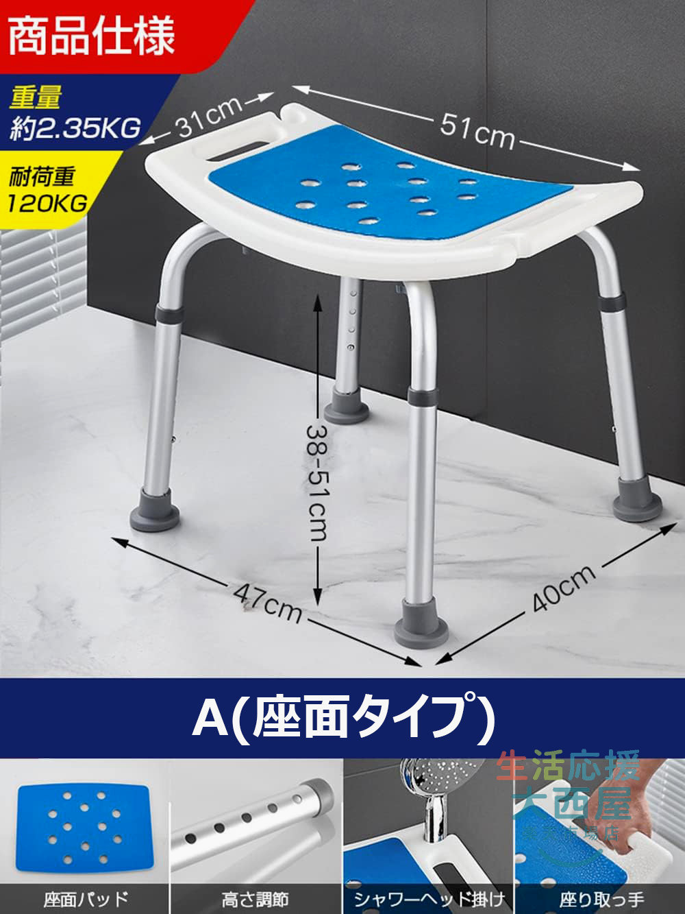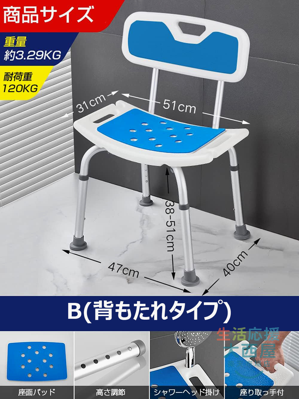 シャワーチェア 介護用品 風呂椅子 6 A(座面タイプ) B(背もたれタイプ) C(背もたれ肘掛けタイプ)