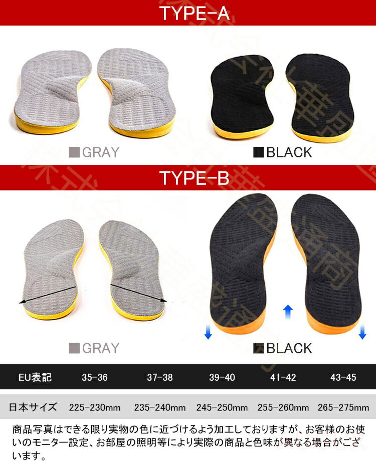 インソール 2足セット 中敷き O型脚 靴ケア用品 アクセサリ インソール(中敷) 人気 TYPE-A GRAY TYPE-B GRAY 35-36 37-38 39-40 41-42 43-45