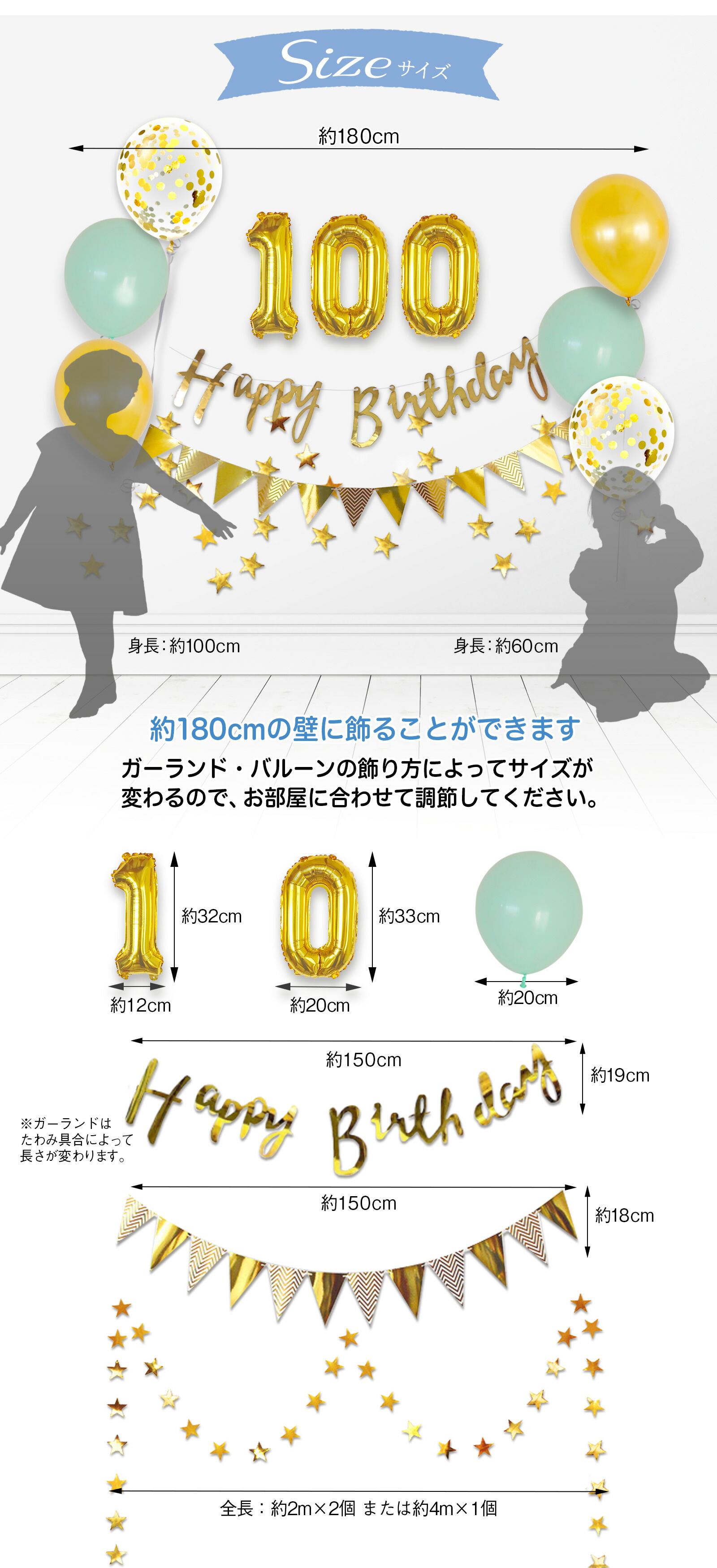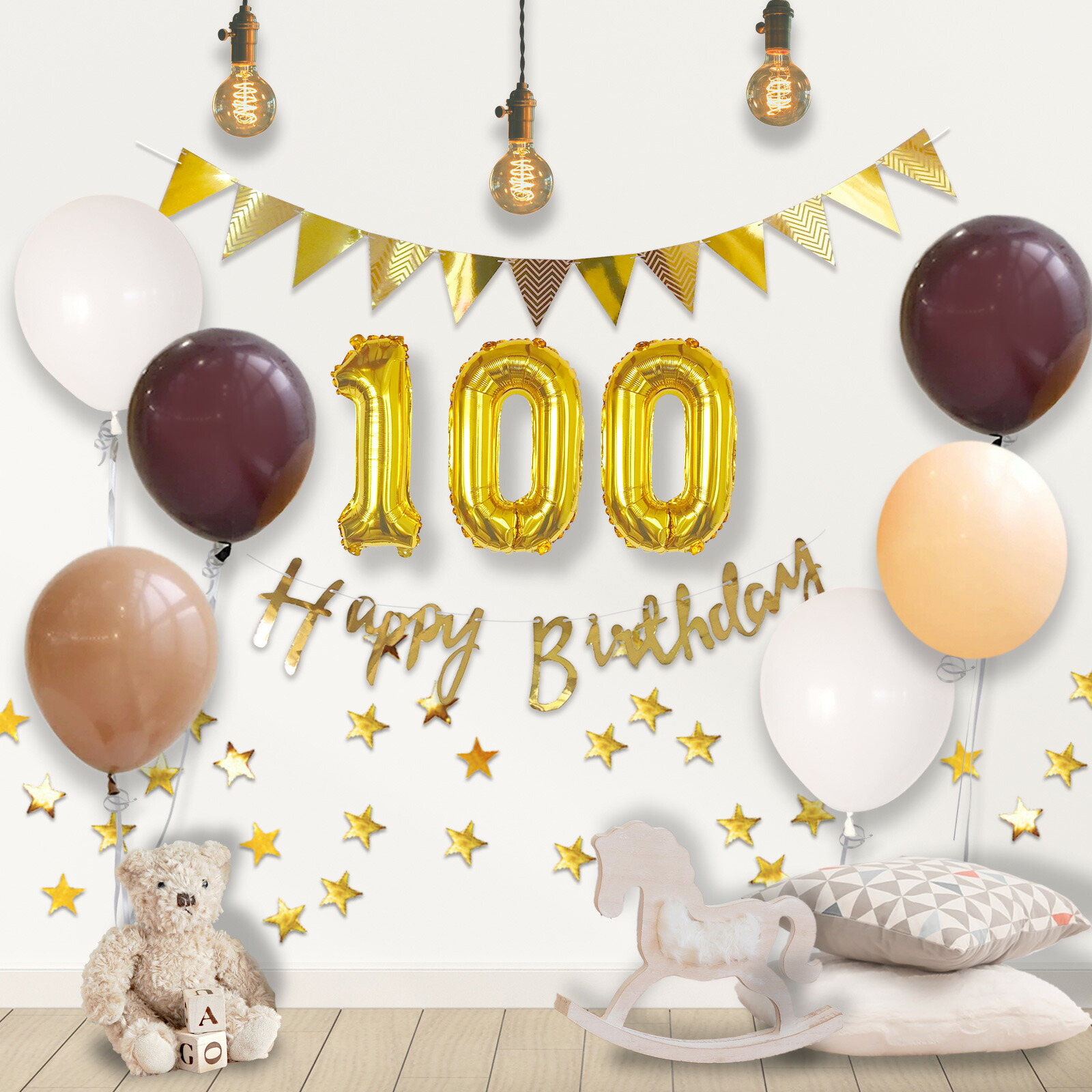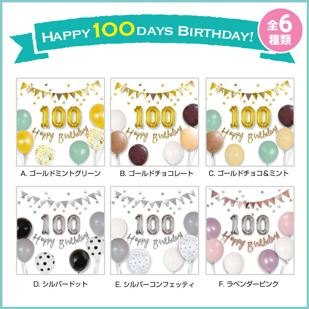 100日 飾り お食い初め バルーン A. ゴールドミントグリーン B. ゴールドチョコレート E. シルバーコンフェッティ F. ラベンダーピンク