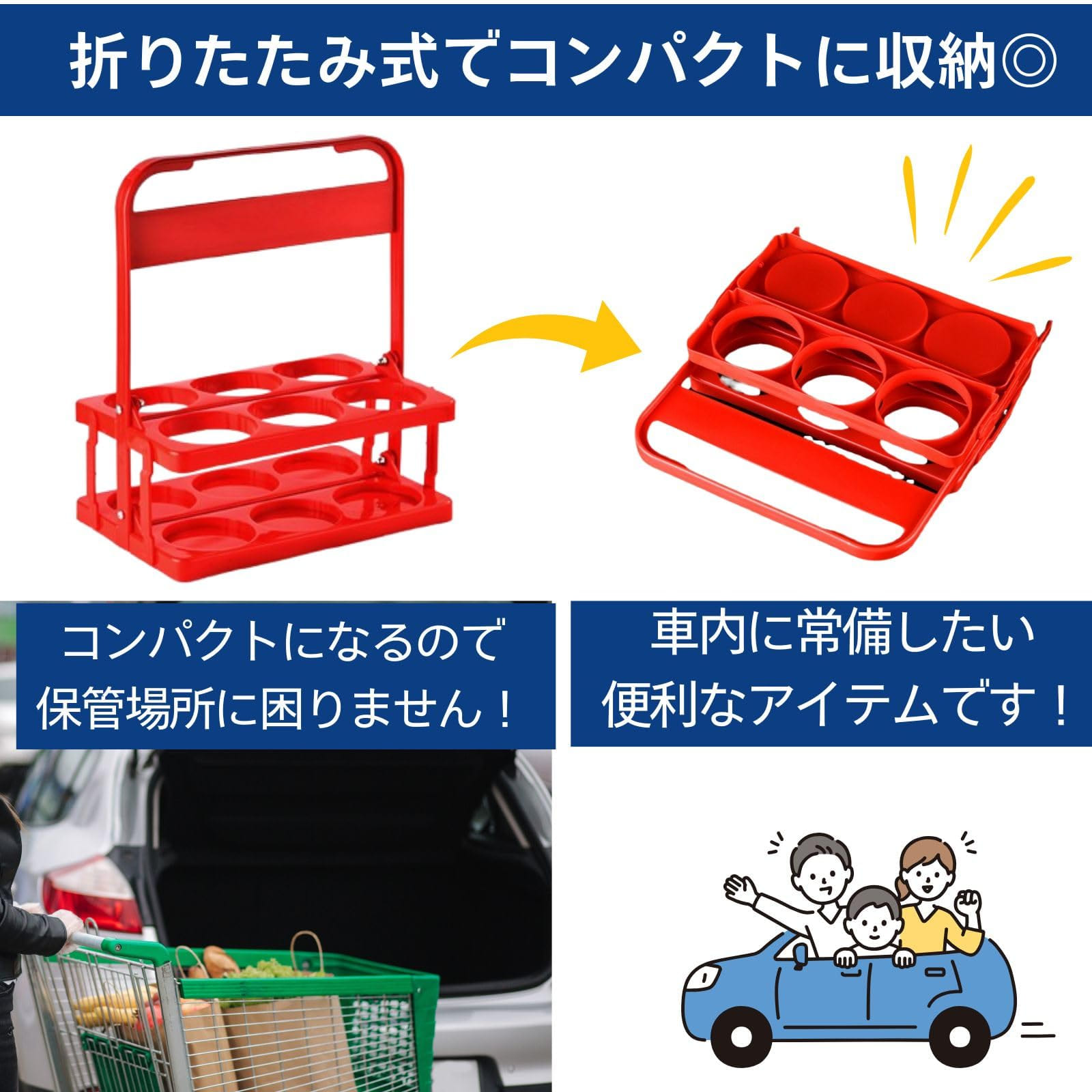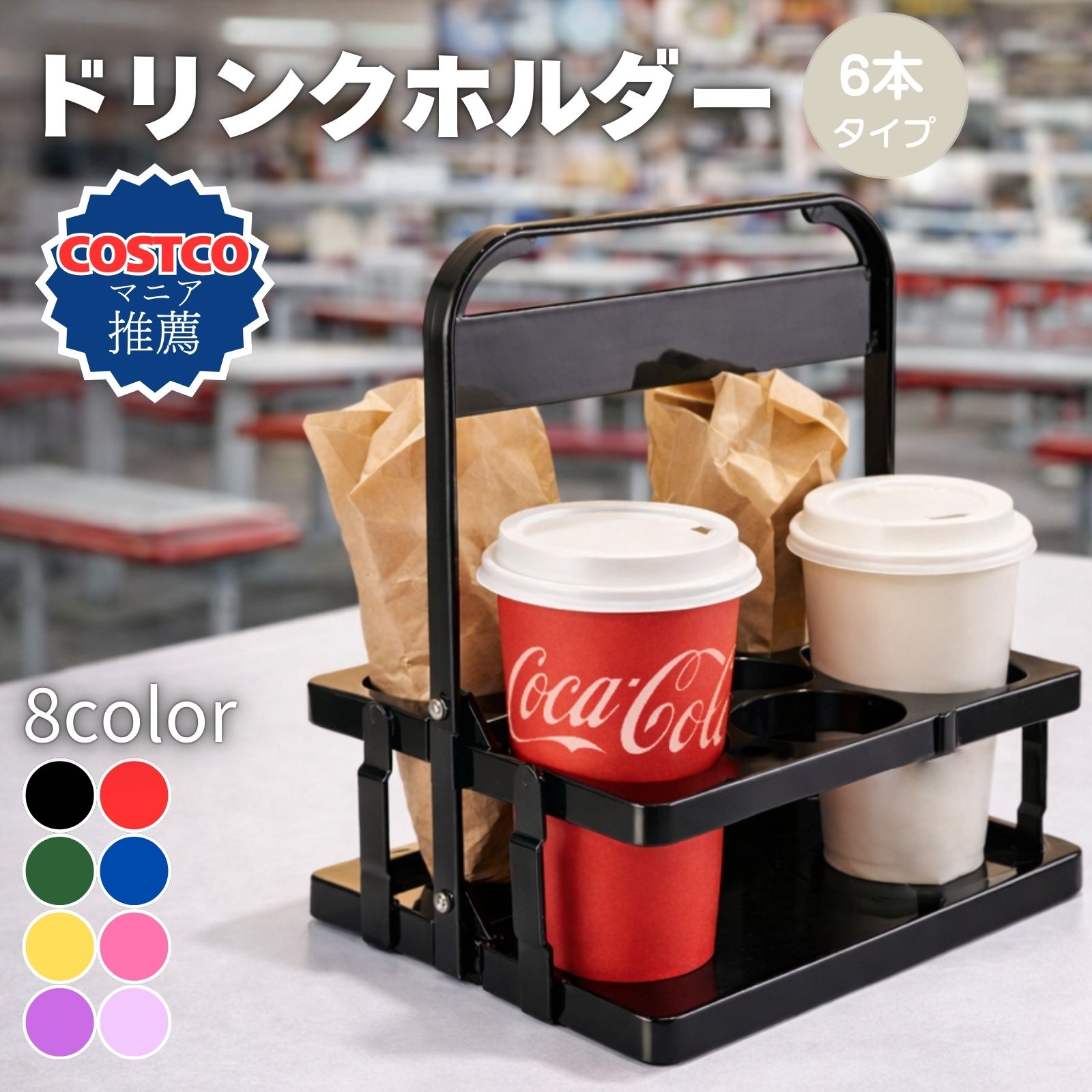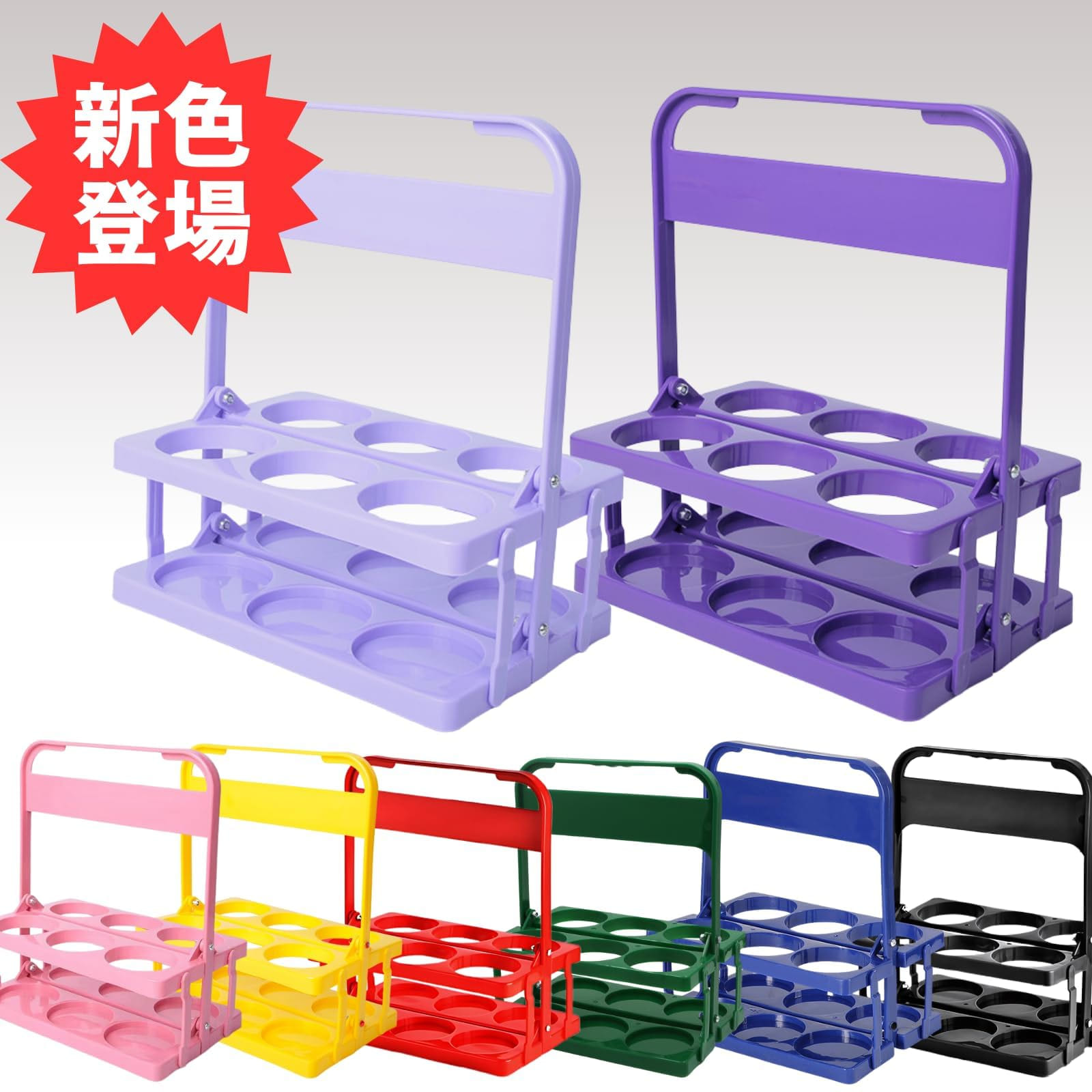 ドリンクホルダー 6本 折りたたみ ド ブラック レッド ブルー グリーン イエロー ピンク ラベンダー パープル