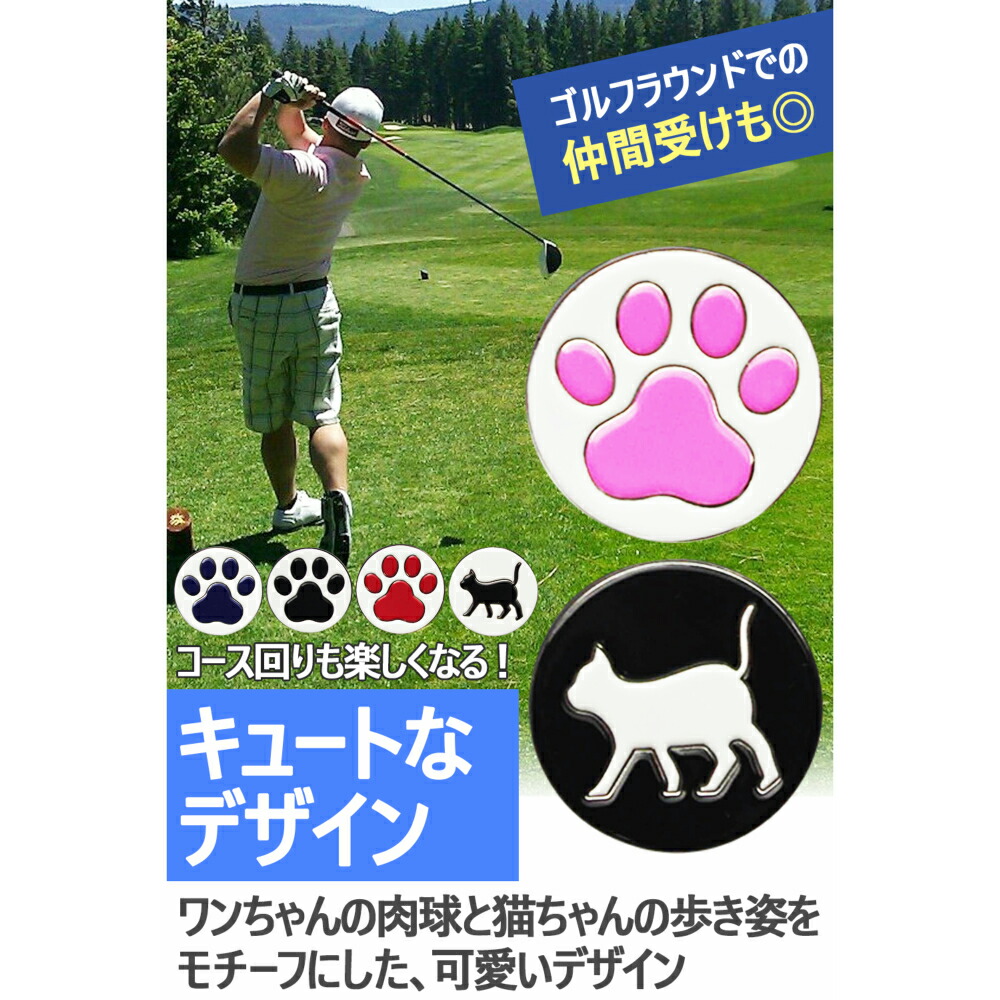 ゴルフマーカー マグネット付き ハット スポーツ アウトドア 続々登場 肉球1 黒×赤 肉球2 紺×桃 歩き猫 黒×白