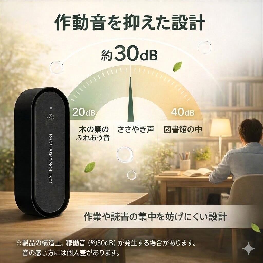 ※製品の構造上、稼働音(約30dB)が発生する場合があります。音の感じ方には個人差があります。完全無音ではございませんので予めご了承ください。