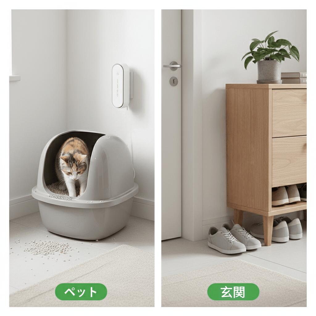 ※発生する微量のオゾンにより悪臭分子を酸化・分解して脱臭します。正常な動作となりますので、ご安心してお使い下さい。