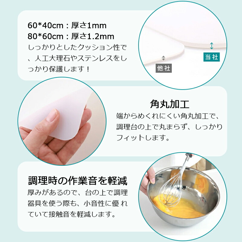 シリコンマット キッチン 保護マット キッチン用品 食器 調理器具 続々入荷中 ホワイト(半透明) グレー(透け感ナシ) ホワイト(透け感ナシ) 30*40cm 厚さ1.2mm 40cm*60cm 厚さ1mm 40*60cm/厚さ2mm 50*70cm 厚さ1.2mm 60cm*80cm/厚さ1.2mm