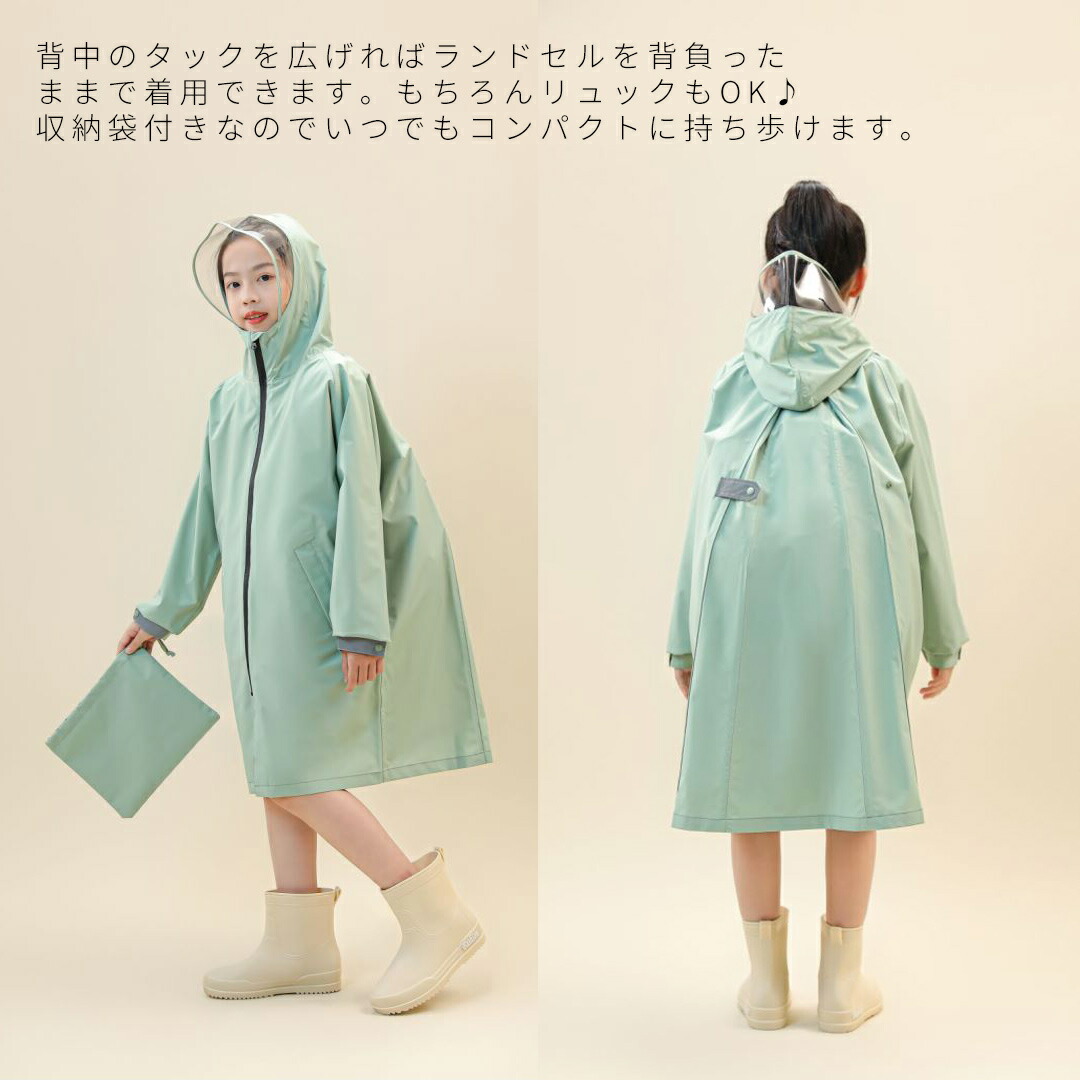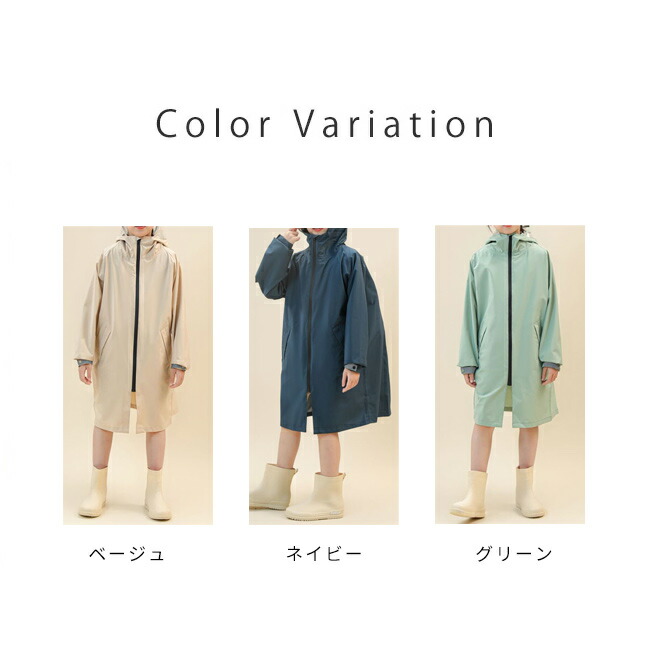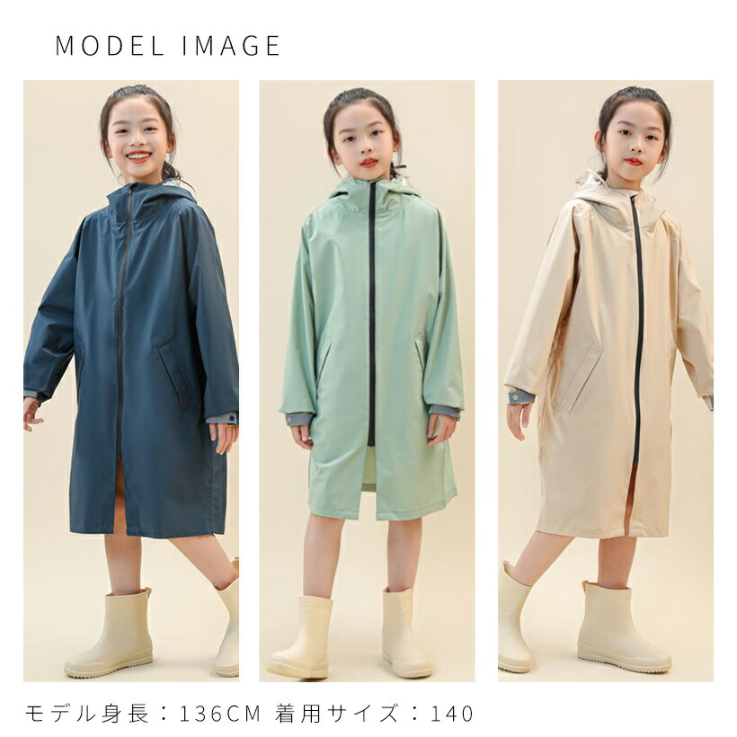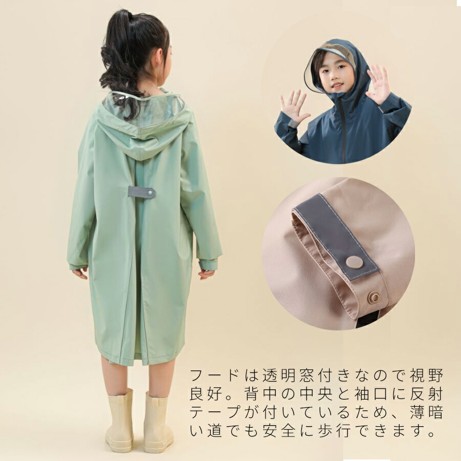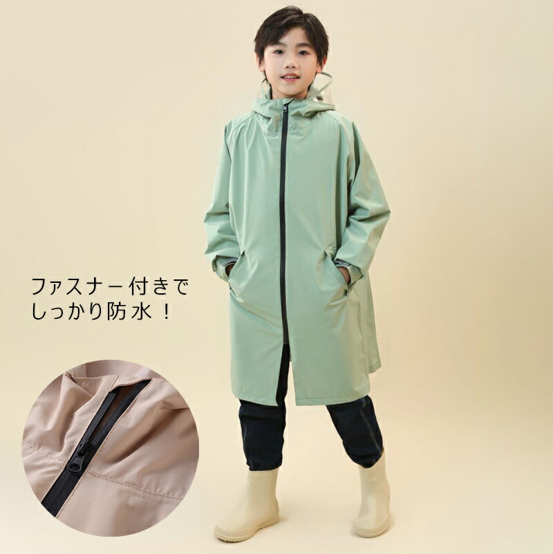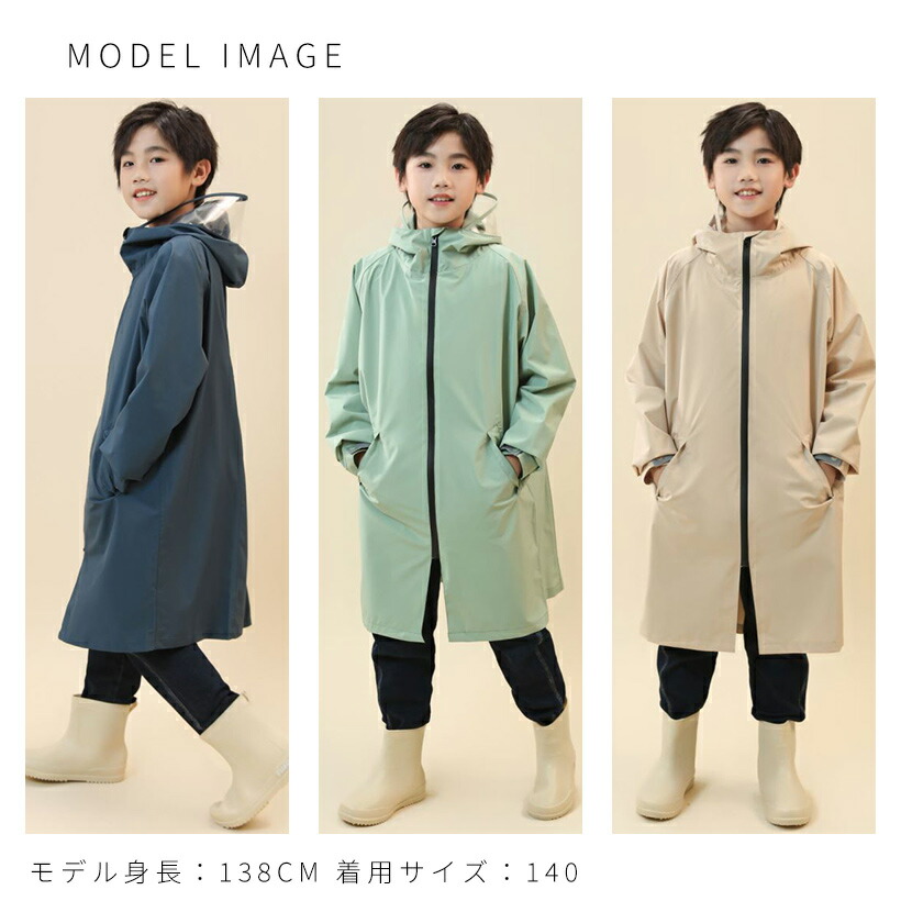 レインコート キッズ ジュニア ランド 130cm 140cm 150cm 160cm ベージュ グリーン ネイビー