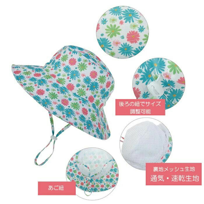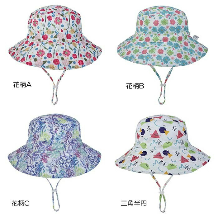 キッズ帽子 日よけ ベビー帽子 サンハ キッズ 帽子 ハット 特集 50 54 花柄A 花柄B 花柄C 三角半円 恐竜 イカ&クラゲ 海A 海B パープル グリーン ベージュ ホワイト ブルー ピンク グレー ネイビー イエロー カーキ 薄いピンク アーミーグリーン