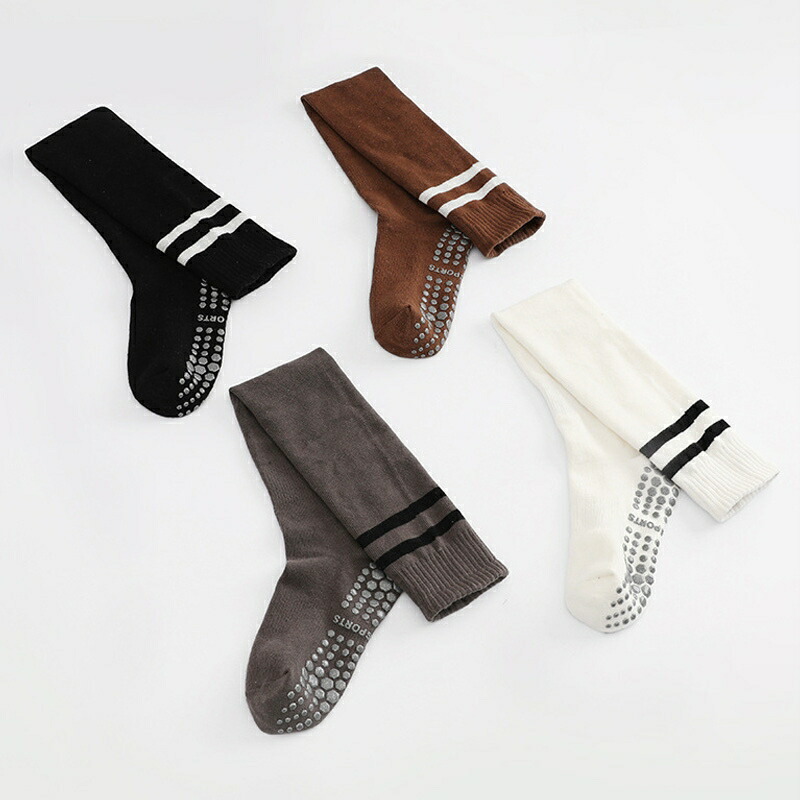 ニーハイソックス 滑り止め ヨガ靴下ニ ホワイト ブラウン グレー ブラック