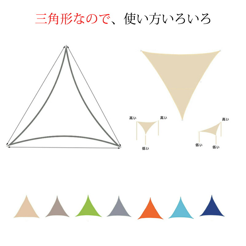 日よけシェード 三角形 サンシェード カーキ ベージュ ブラウン ライトグリーン グレー オレンジ 水色 ブルー ブラック ホワイト 紫 ローズ色 イェロー グリーン 2*2*2m 2.4*2.4*2.4m 3*3*3m 3.6*3.6*3.6m 4*4*4m 4.5*4.5*4.5m 5*5*5m 6*6*6m 3*3**4.3m 3*4*5m 4*4**5.7m 5*5*7.1m