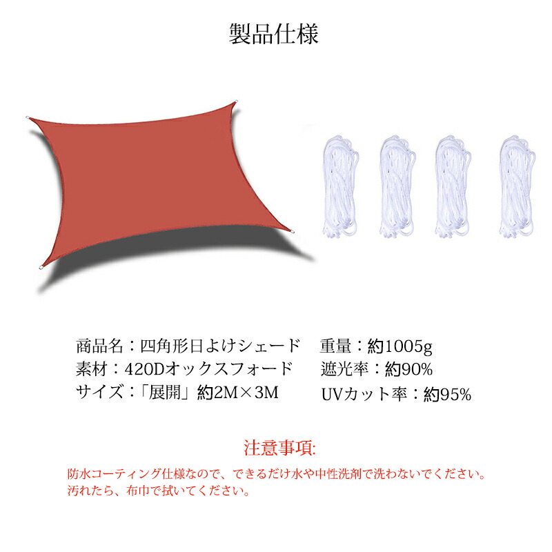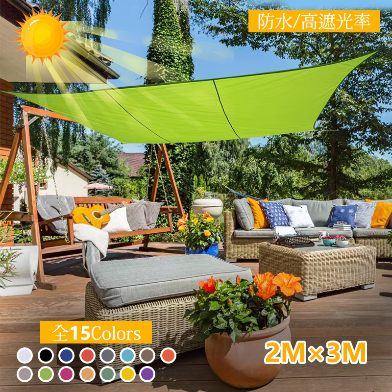 日よけシェード 2x3m 屋外 日除け ホワイト ブラック ブルー レッド グレー 水色 ブラウン カーキ オレンジ ライトグリーン ローズ色 ベージュ グリーン イェロー 紫