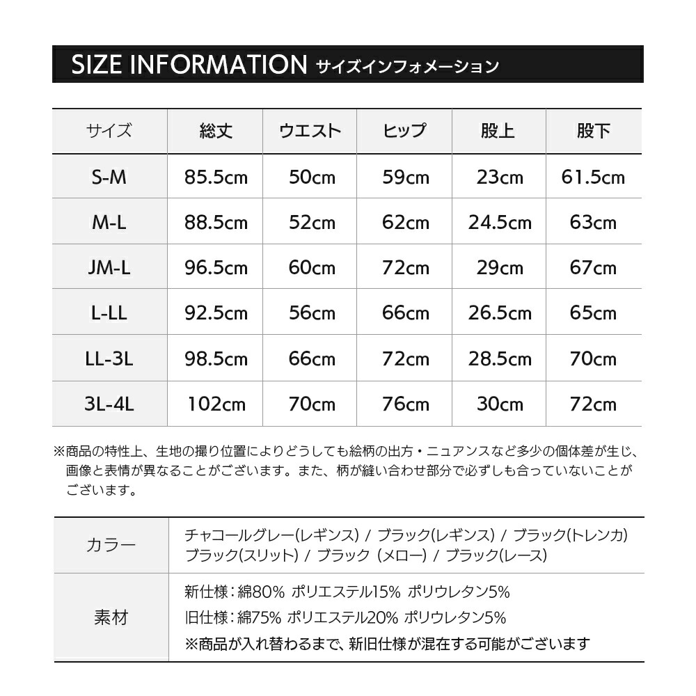 綿混10分丈レギンス 10分丈 タイツ インナー 下着 ナイトウエア 早い者勝ち S-M M-L JM-L L-LL LL-3L 3L-4L 1 チャコールグレー(レギンス) 2 ブラック(レギンス) 3 ブラック(トレンカ) 4 ブラック(スリット) 5 ブラック(メロー)