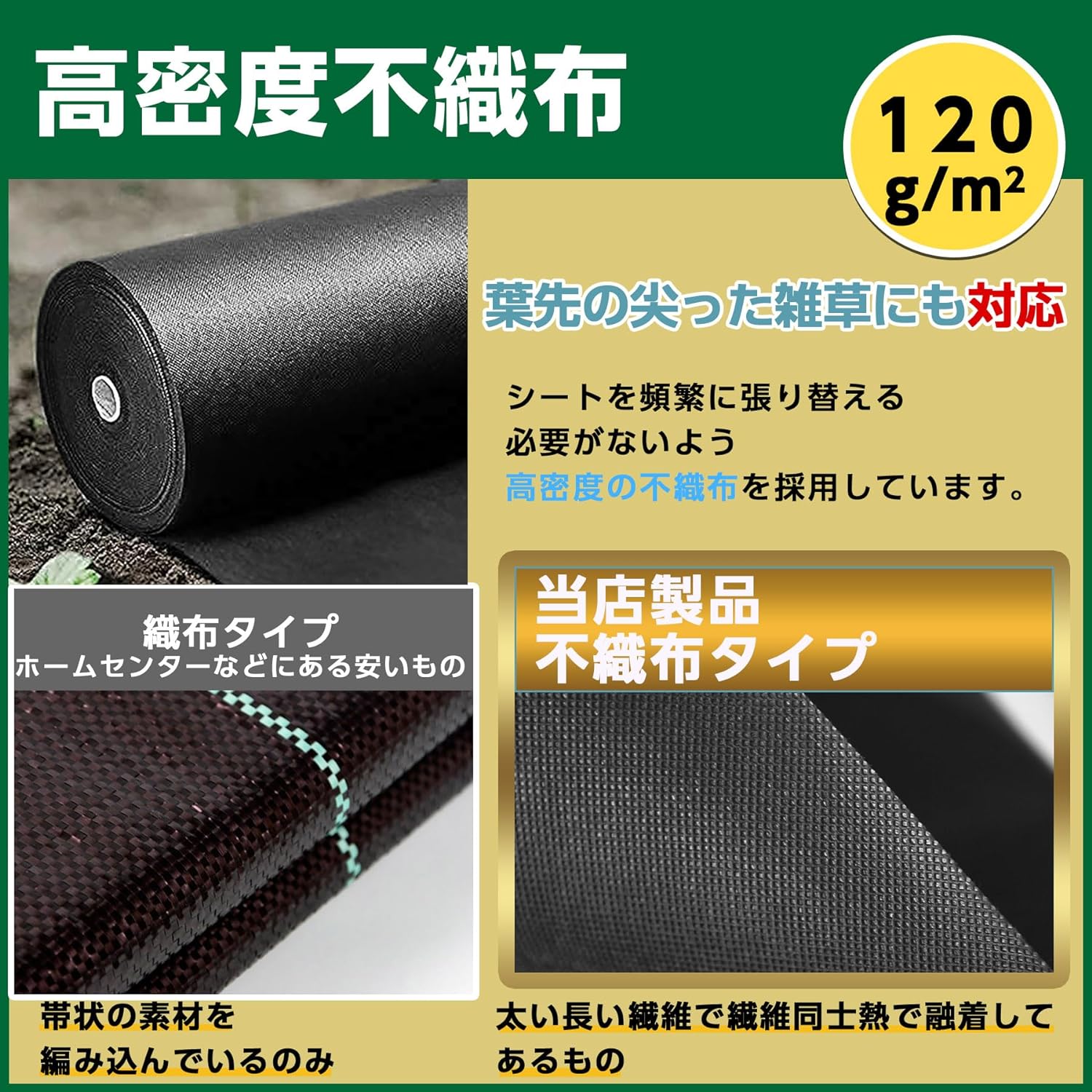 防草シート 1m×50m 雑草防止 高 グリーン ブラック