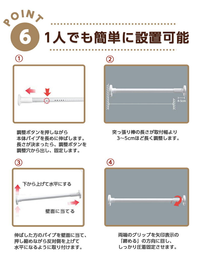突っ張り棒 強力 320cm ツッパリ ホワイト ブラック