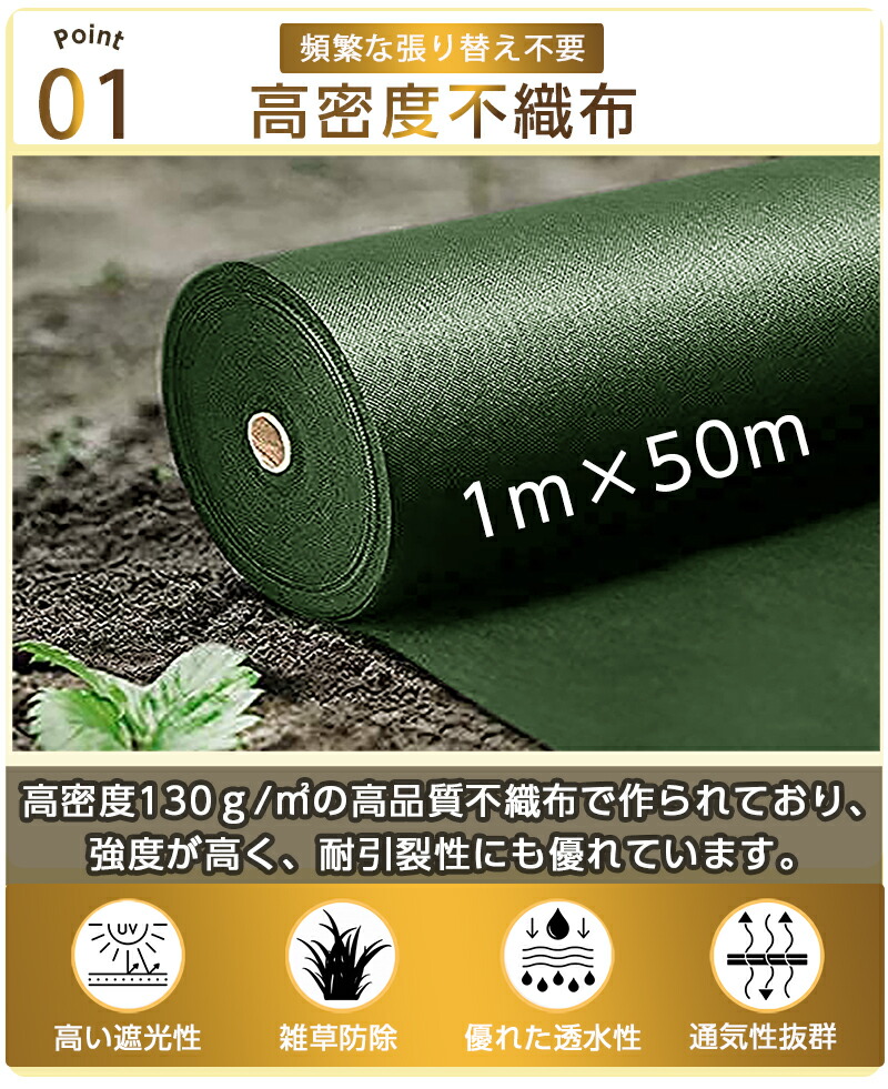 超高耐久 防草シート 1mx50m 高 グリーン ブラック