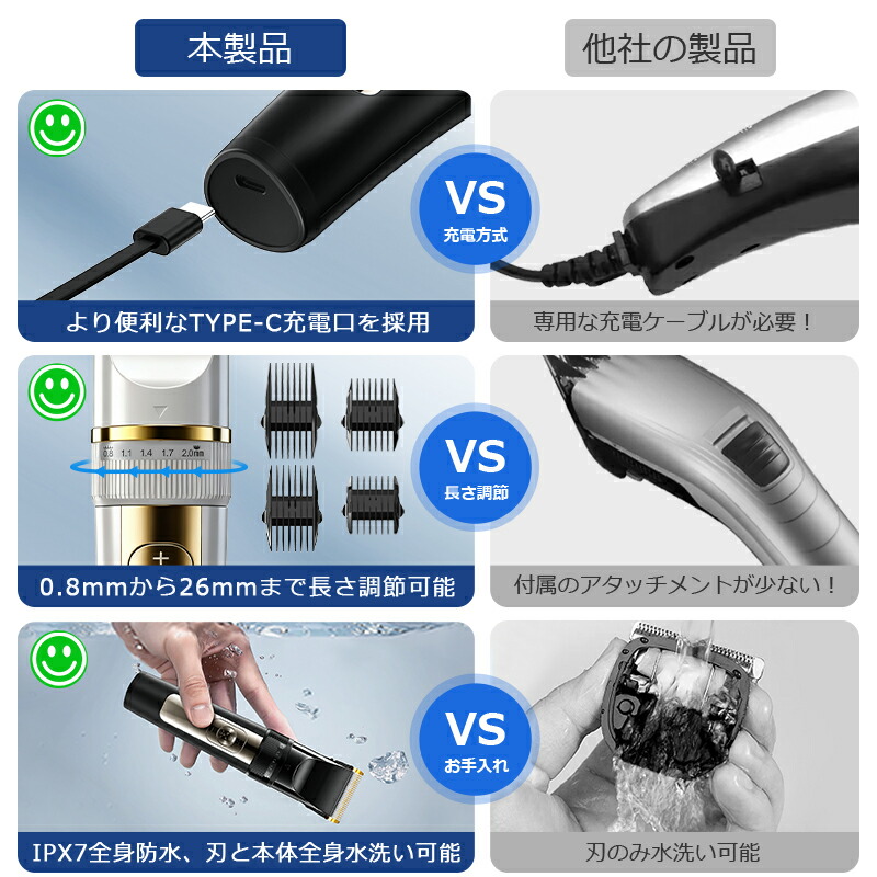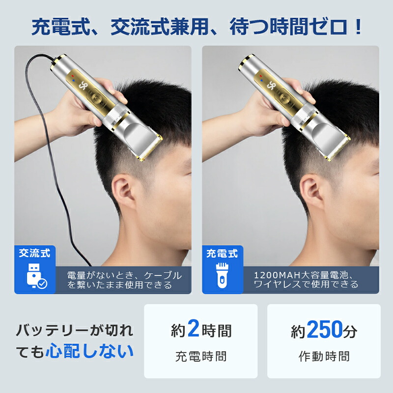 バリカン 散髪 ヘアカッター 充電式 黒 金銀