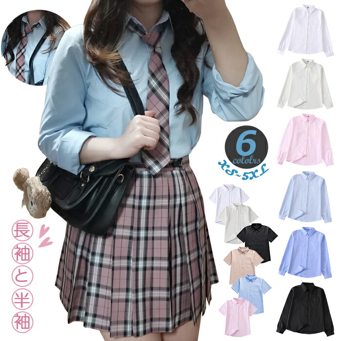 P5倍 シャツ スクールシャツ 女子 白 長袖 ブラック長袖 ピンク 長袖 ミルク白 長袖 ライトブルー 長袖 ダークブルー 長袖 白 半袖 ブラック半袖 カーキ 半袖 ミルク白 半袖 ピンク 半袖 ライトブルー 半袖 ダークブルー 半袖 XS S M L XL 2XL 3XL 4XL 5XL