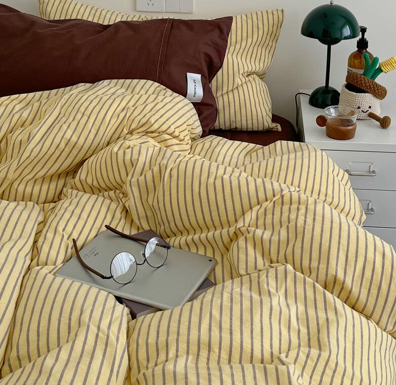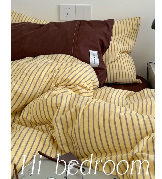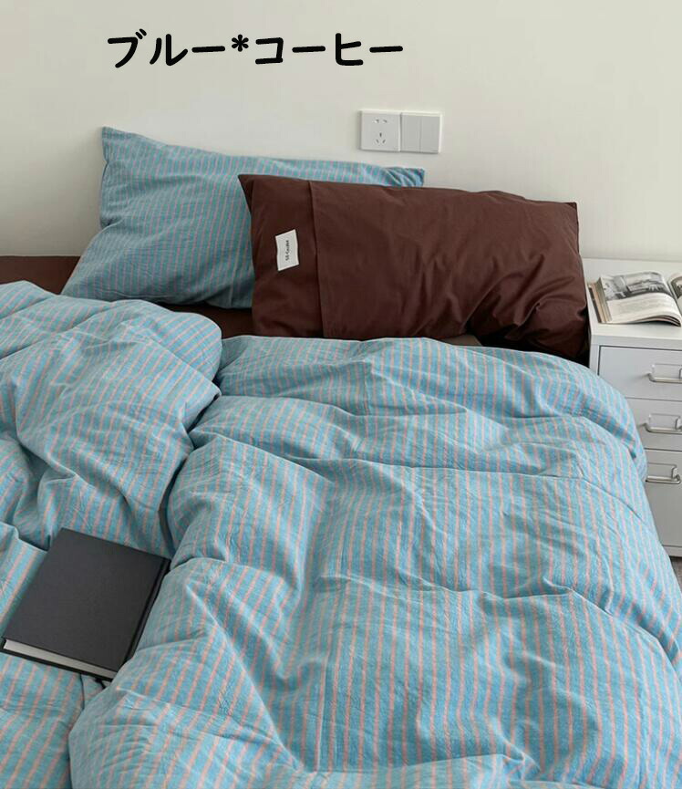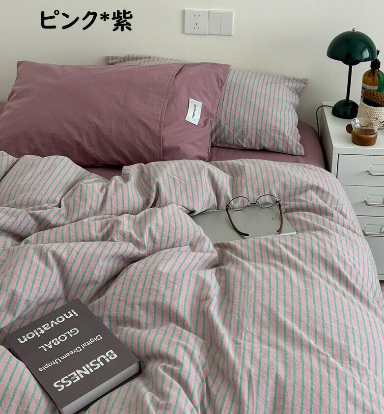 布団カバーセット ストライプ柄 ins インテリア 寝具 収納 人気 シングル(3点セット) フラットシーツタイプ1.5m フラットシーツタイプ2.0m ボックスシーツタイプ1.5m ボックスシーツタイプ1.8m 黄色*コーヒー ピンク*紫 オレンジ*赤 ブルー*コーヒー 緑*紫