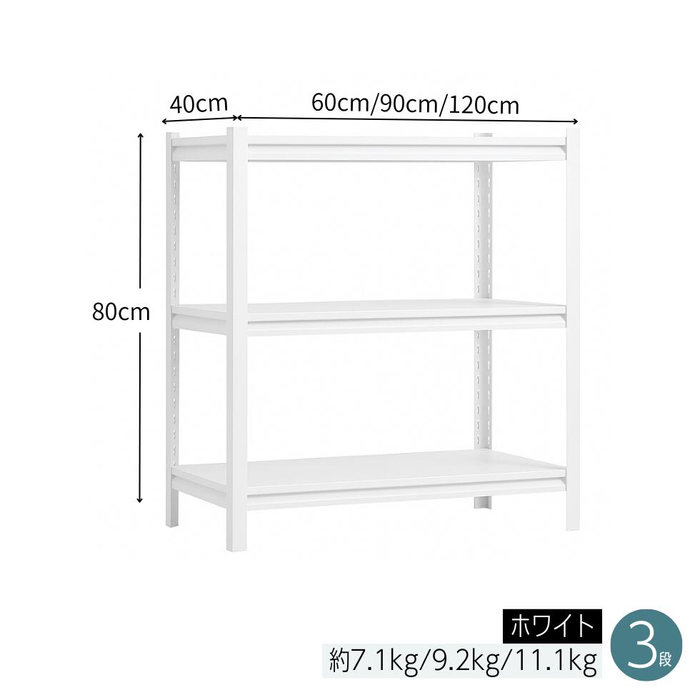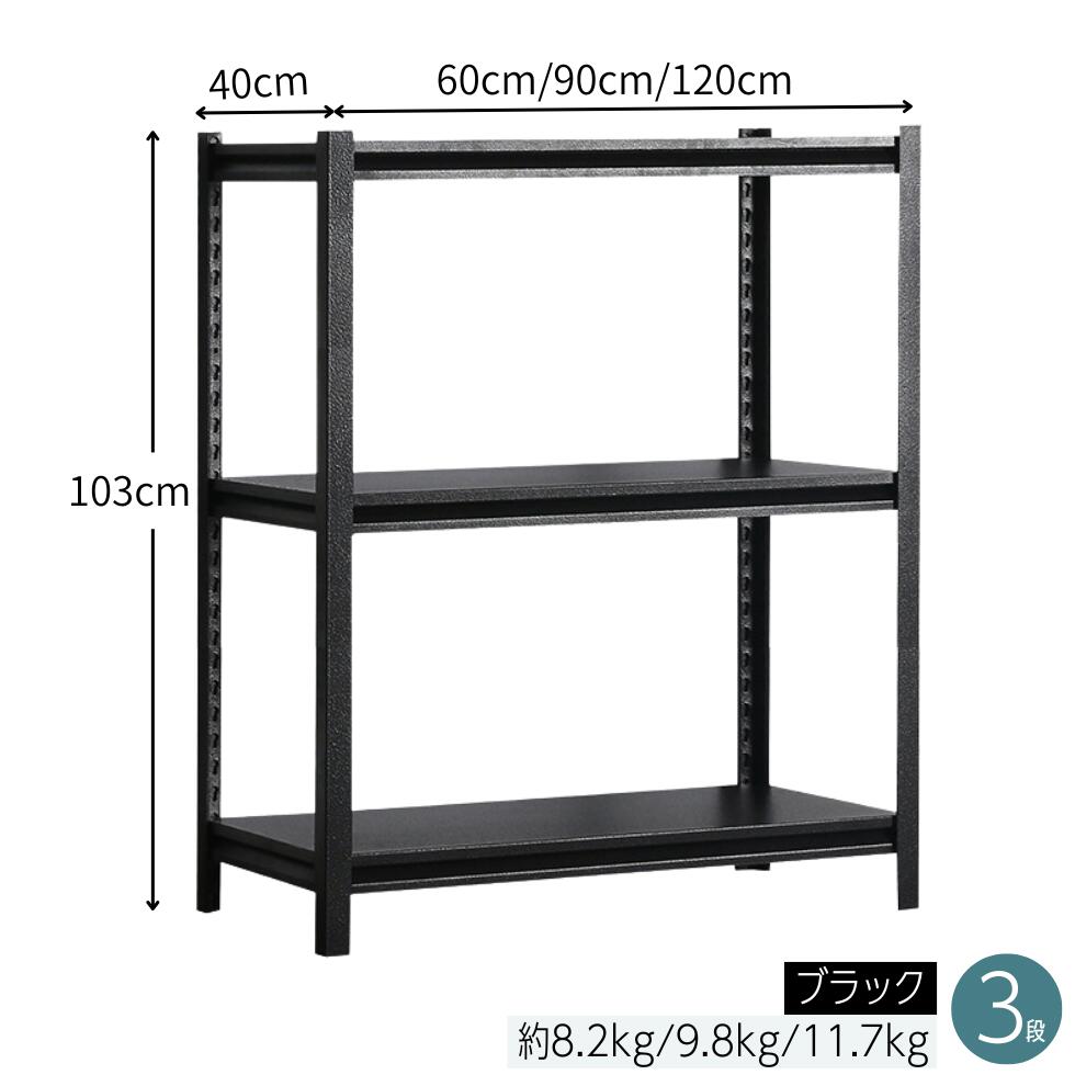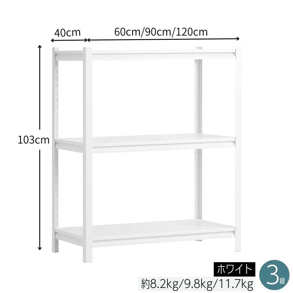 ※ 頑丈なスチール製ラックは、幅60cm・幅90cm・幅120cm×奥行き40cm×3段・4段・5段のサイズ展開が豊富。ご家庭のちょっとした隙間から、作業場や倉庫まで幅広く対応します。重い物でもしっかり支え、スペースに合わせてスマートに整理整頓。さらに、無駄を省いたスリムでシンプルなデザインだから、どんな場所にも自然と馴染みます。
