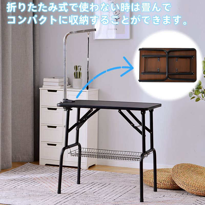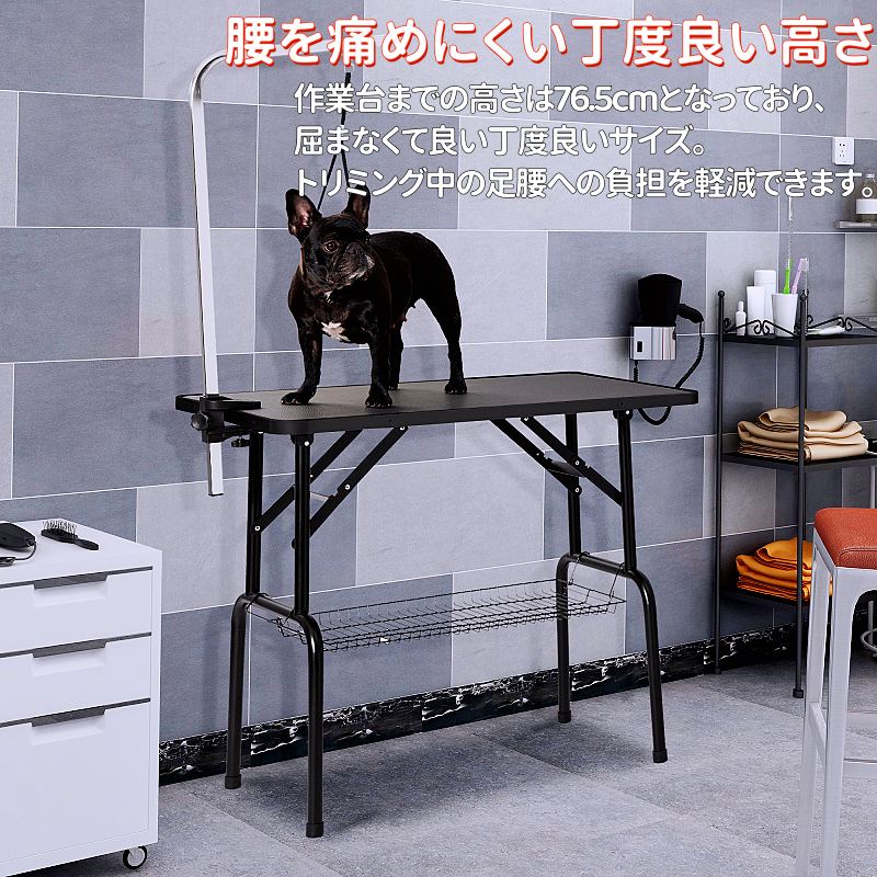 トリミングテーブル 折りたたみ トリミング台 80×50×11cm 耐荷重75kg 小型犬 中型犬 猫用 静電気防止 防汚加工 滑りにくい アジャスター付き 無段階調整 コンパクト トリミ アーム高さ