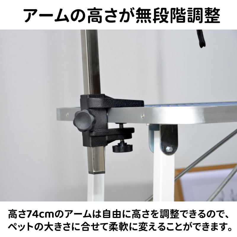 高さ74cmのアームは自由に高さを調整できるので、ペットの大きさに合せて柔軟に変えることができます。