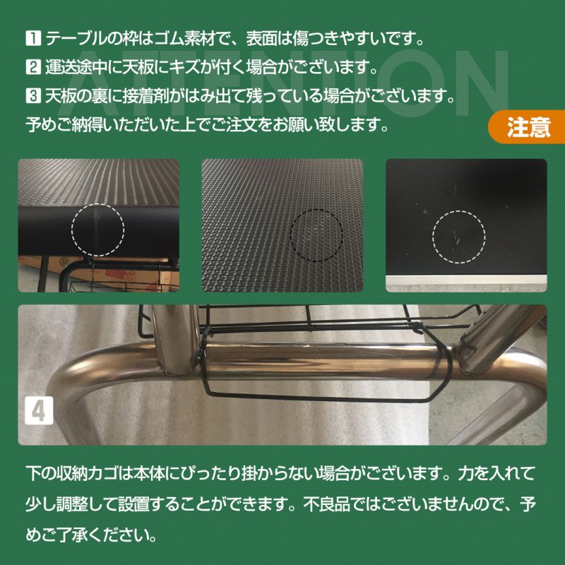 ※脚が折曲がらないようロックを兼ねますので、テーブルご使用時には必ずカゴを設置してください。