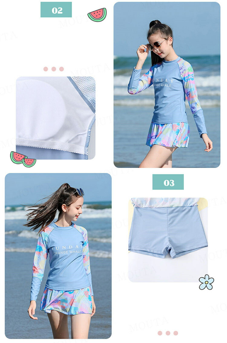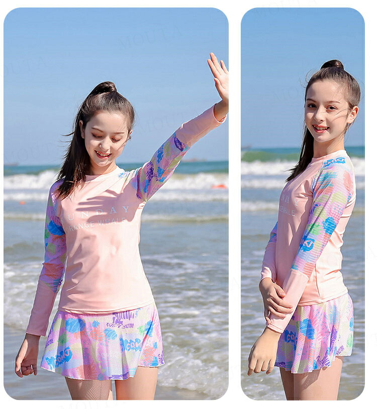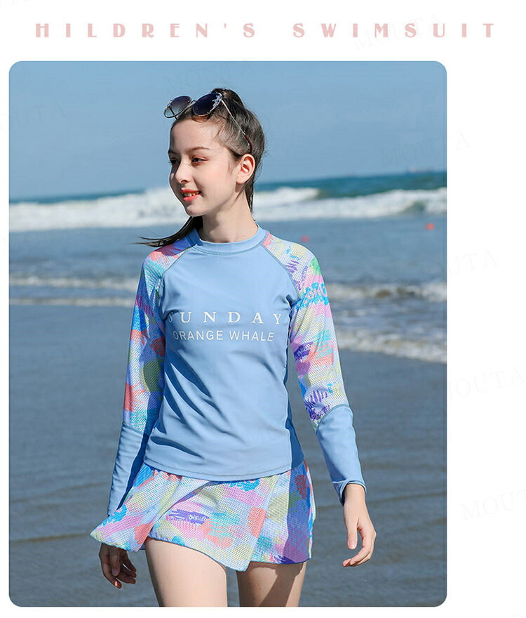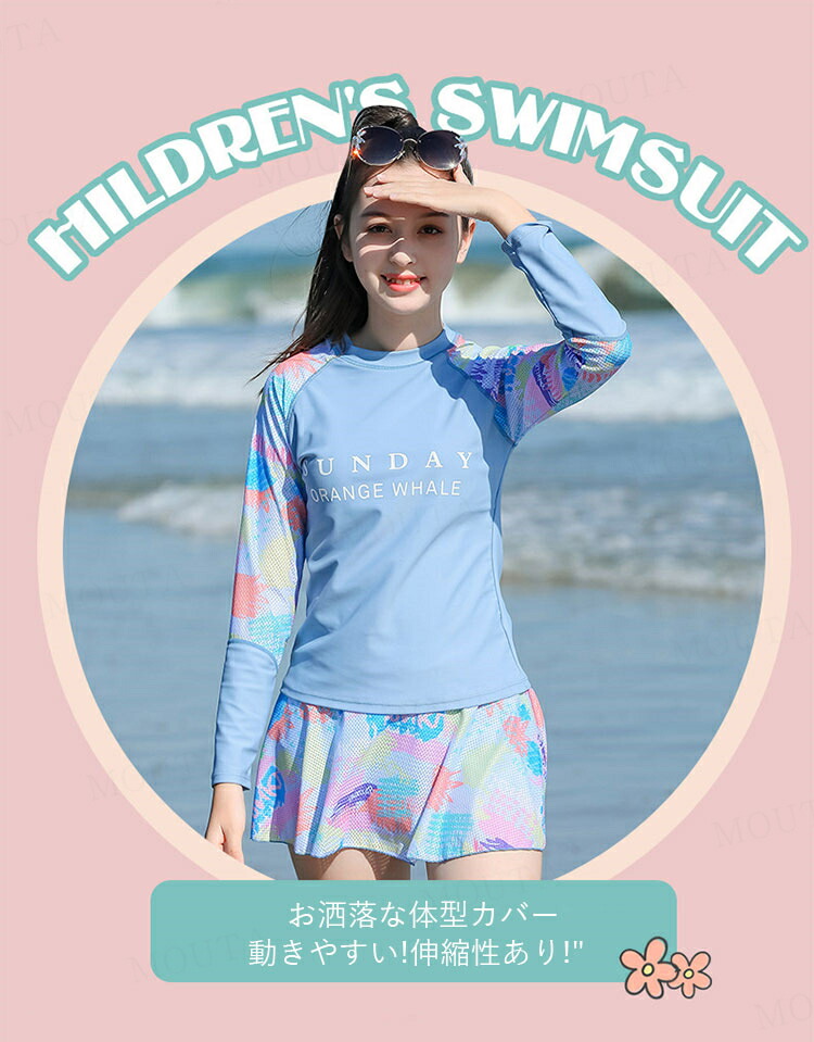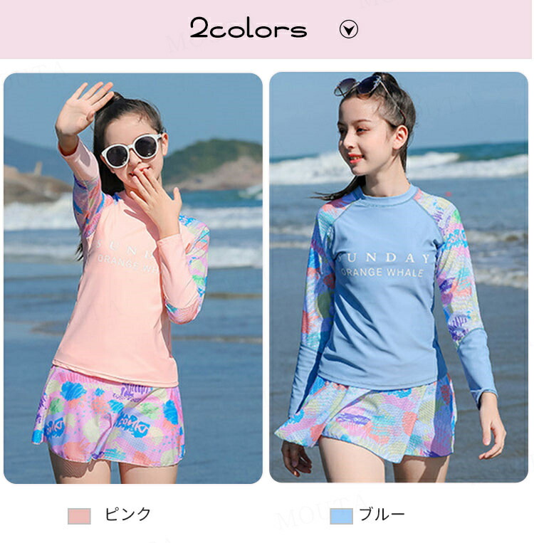 女の子 水着 長袖 セパレート 2点セ キッズ ベビー マタニティ 新登場! ピンク ブルー 140 150 160 165 170