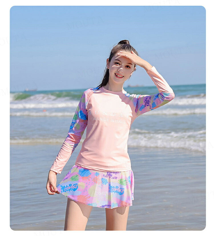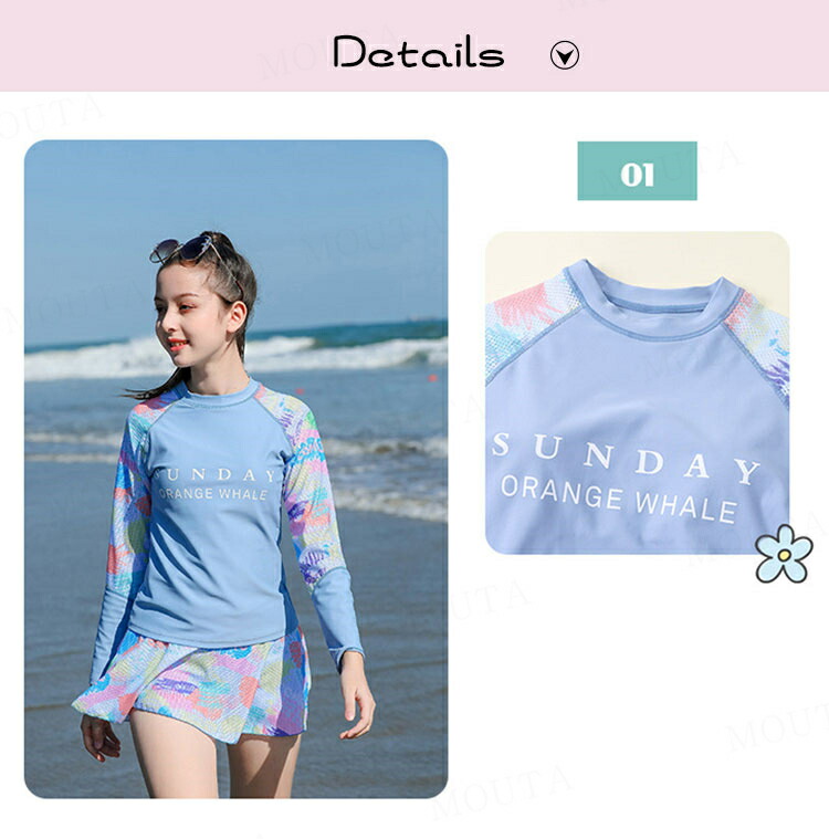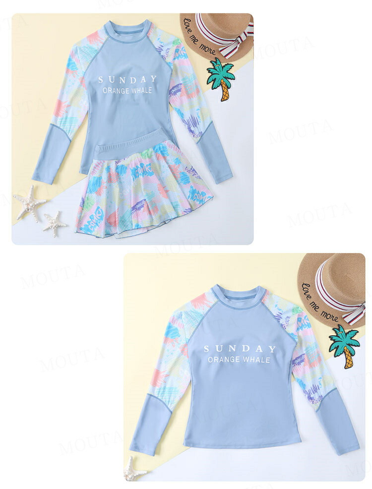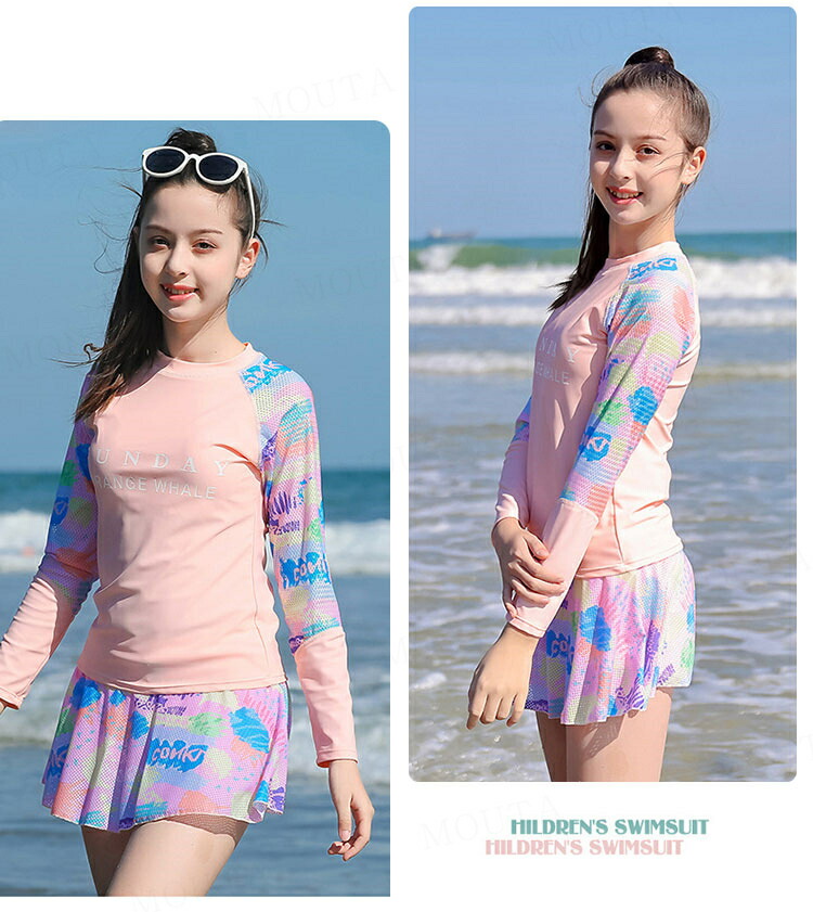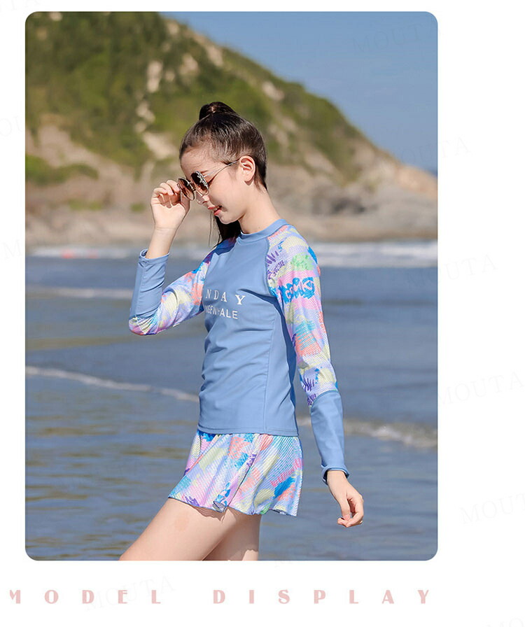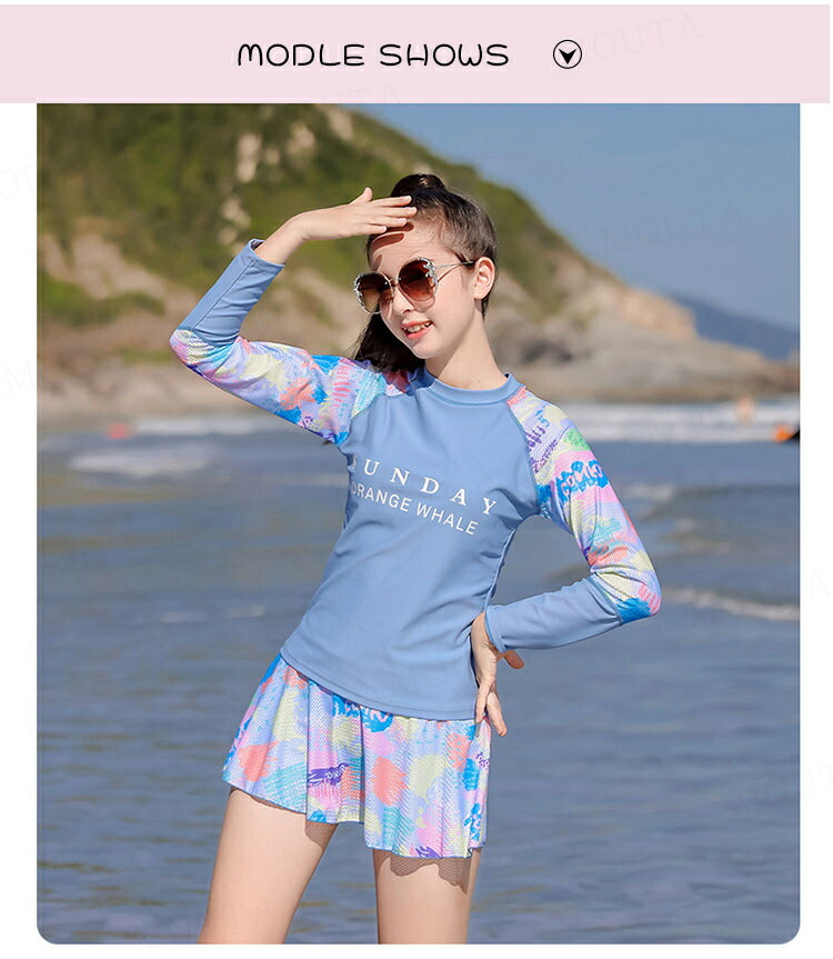 女の子 水着 長袖 セパレート 2点セ キッズ ベビー マタニティ 新登場! ピンク ブルー 140 150 160 165 170