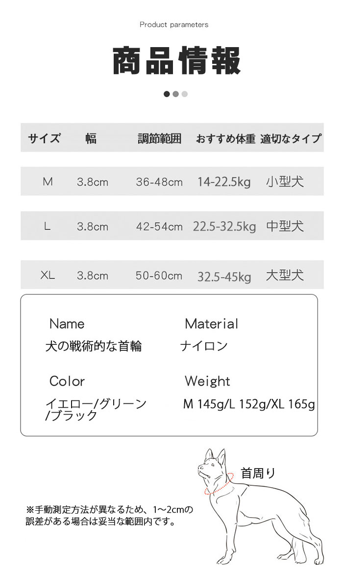 犬 首輪 大型犬 犬の首輪 中型犬用 犬用品 首輪 胴輪 リード 首輪 早い者勝ち ブラック カーキ グリーン M L XL