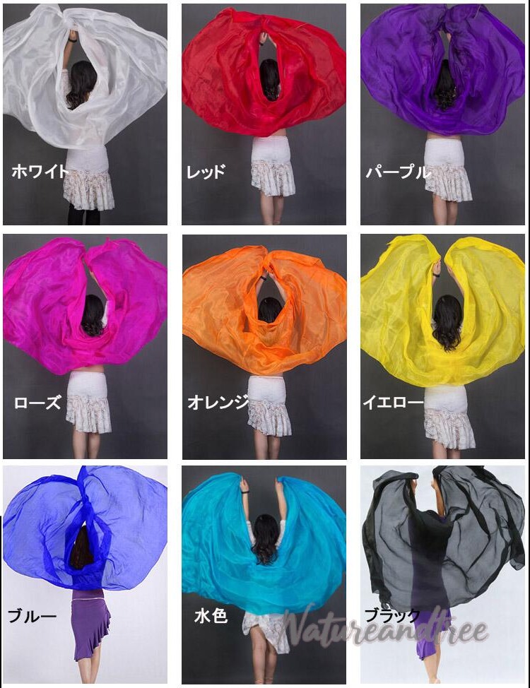 シルクベール ベリーダンス ベール シ 体操 ダンス ベリーダンス ベール 続々入荷中 長さ2.7M-幅1.14M 長さ2.5M-幅1.14M ホワイト レッド パープル イエロー オレンジ ブラック 水色 ローズ ブルー
