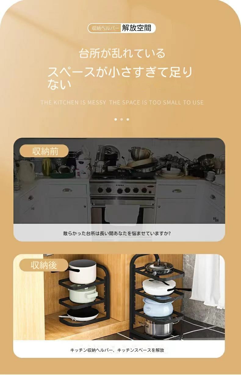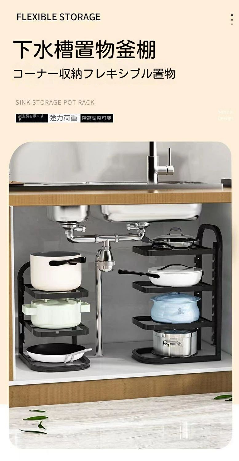 鍋や調理器具 3段 流し台下 組立簡単 キッチン用品 食器 調理器具 早い者勝ち 2段 3段 4段