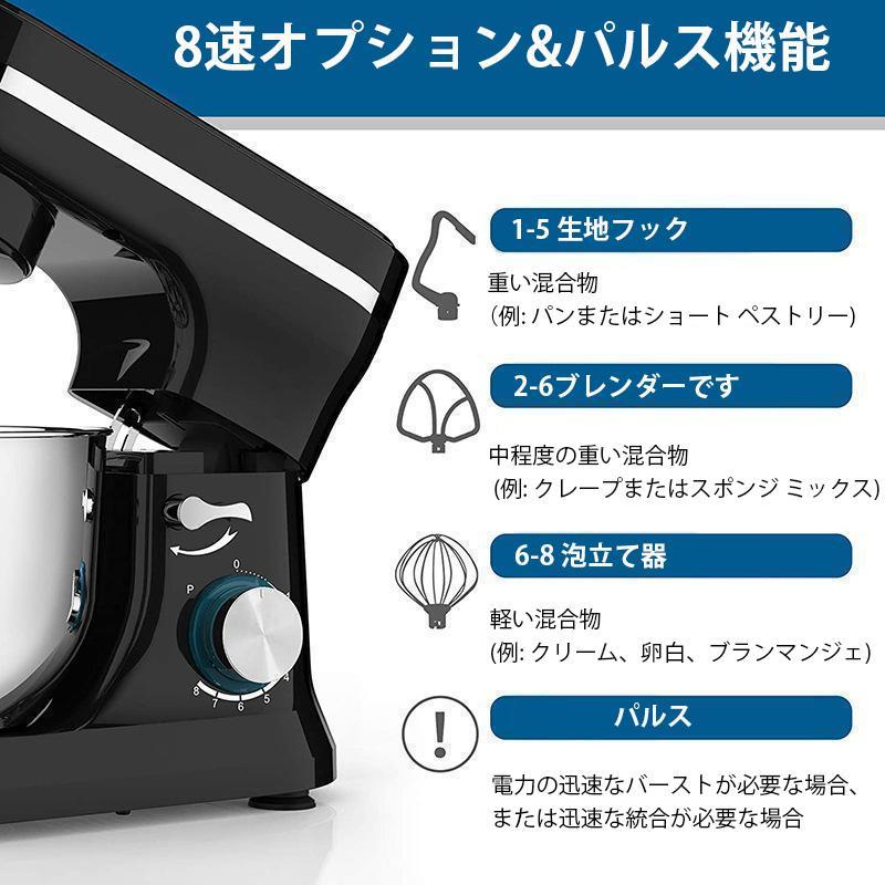 スタンドミキサー 卓上ミキサー ミキサー 6L大容量 3種類アタッチメント付き 「泡立てる」 静音設計-15分タイマー機能