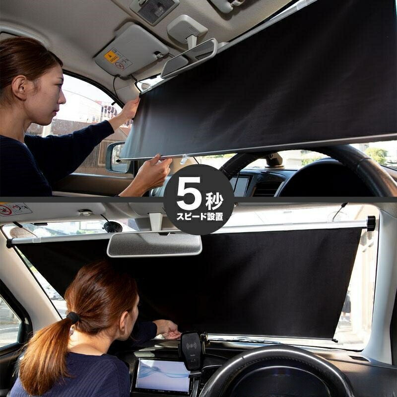 サンシェード 車 フロント 常時取付型 軽自動車 普通車 遮光 ロールスクリーン 吸盤 日よけ 日除けシェード カーテン 汎用