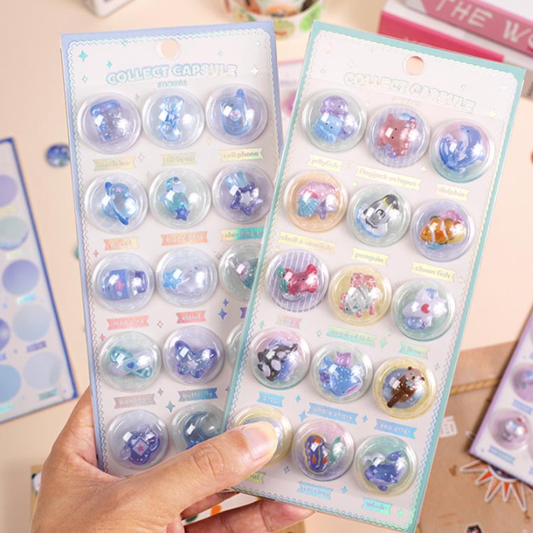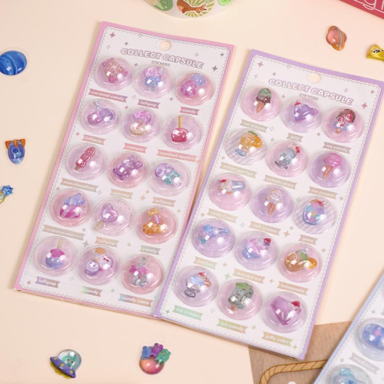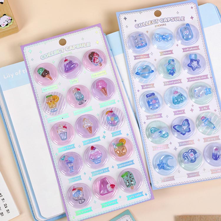 3D エポキシ樹脂 カプセルシール ご褒美シール 再剥離可能 浮き彫りクリスタル ぷくぷくシール 手帳デコレーション PVC材質 子供クリエイティブ 立体シール DIY 励ましステッカー