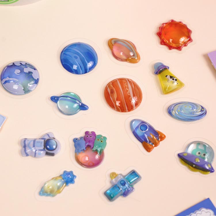 シールにはさまざまな可愛らしいカートゥーン柄がプリントされており、「ぷくぷく」と膨らんだ効果と組み合わせると、日記帳やプレゼントの包装に貼るだけで、子供っぽい可愛らしさが満点になります。子供が工作をする場合でも、大人が手帳を装飾する場合でも、これを使えば可愛さを最大限に引き出し、見ているだけで楽しくなります。