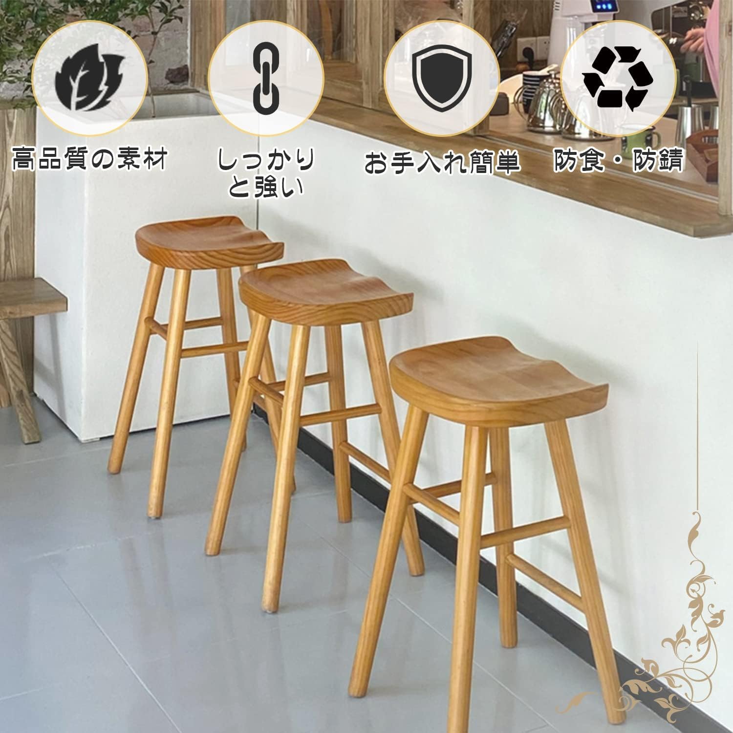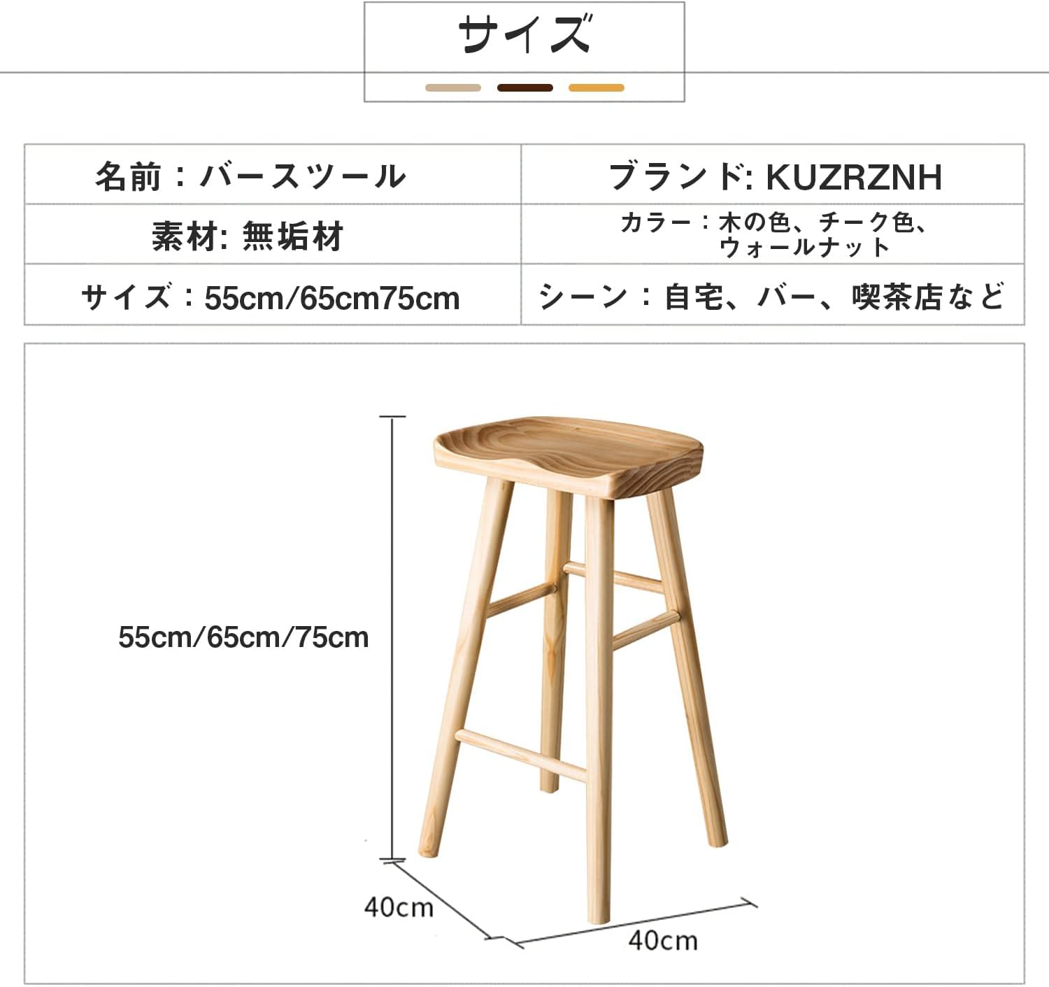 カウンターチェア 木製 バーチェア カウンターイスバースツール 座面高さ55 65 75cm キッチン レストラン ダイニングスツール ハイスツール 安定性 耐久性 快適 オフィス ショップ 学 家庭