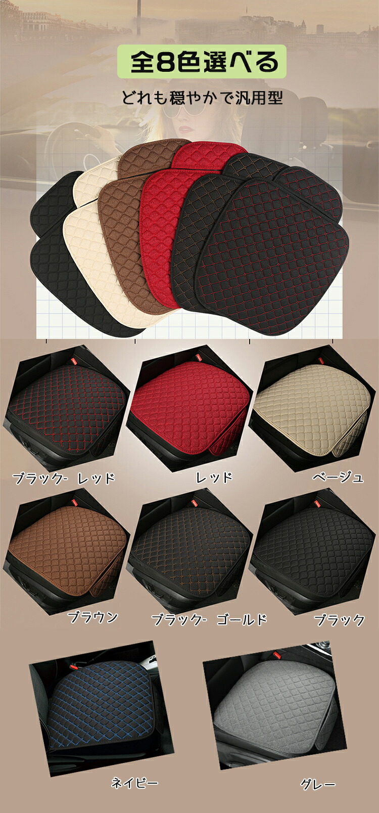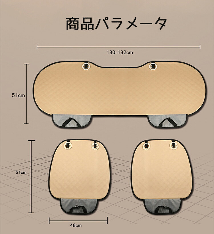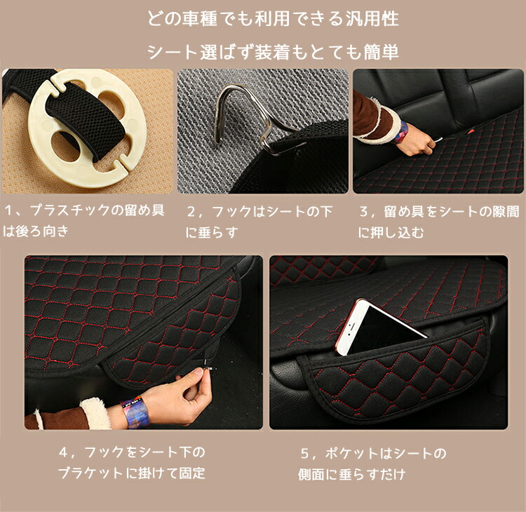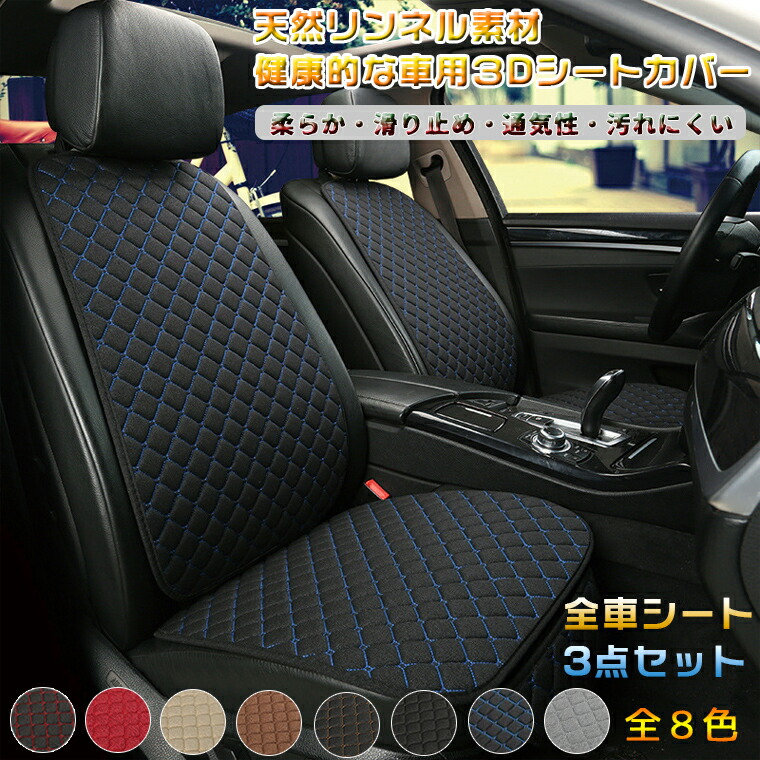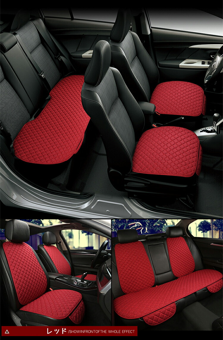 3点セット 車用 シート カバーセット ブラック 赤&黒 ネイビー グレー ベージュ レッド ブラウン 黒&金 前座席用2枚 後部座席用1枚 背中用1枚 前座席用2枚+後部座席用1枚 前座用2枚+後座用1枚+背中用4枚