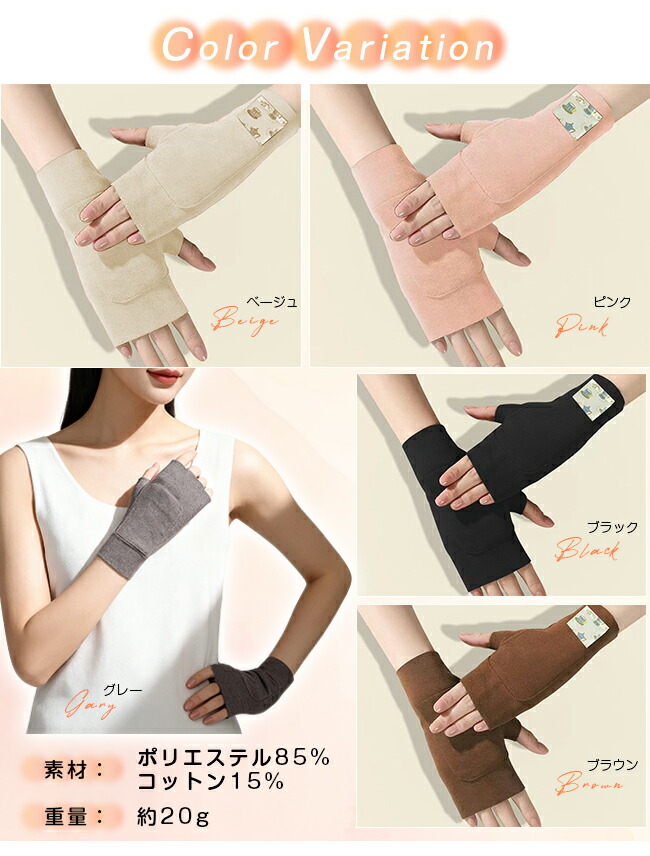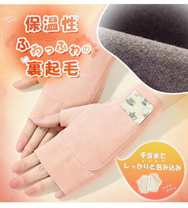 手袋 ポケット付き 起毛 アームウォー バッグ 小物 ブランド雑貨 通販 ブラック グレー ブラウン ベージュ ピンク